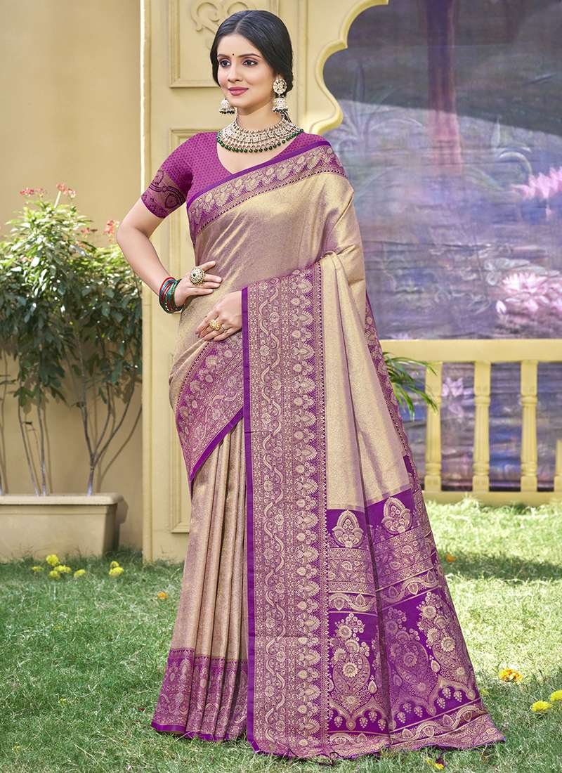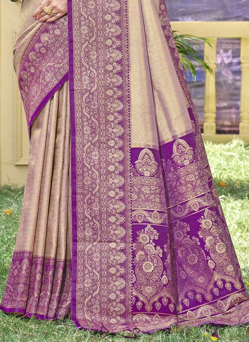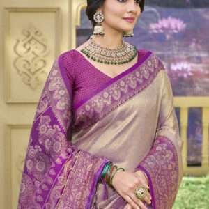 Indulge in the epitome of elegance with our exquisite Banarasi Silk Purple Ceremonial Wear Weaving Saree. Crafted from the finest banarasi silk, this opulent piece exudes an aura of royalty. The meticulous weaving adorning the saree adds a touch of sophistication, making it perfect for any special occasion. The vibrant purple hue commands attention, symbolizing power, ambition, and wisdom. Whether it’s a cherished family heirloom or a statement-making addition to your wardrobe, this saree is sure to turn heads and create lasting memories. Note: Dry clean only for the first wash.
