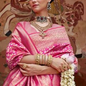 • banarasi silk Sarees In rani pink