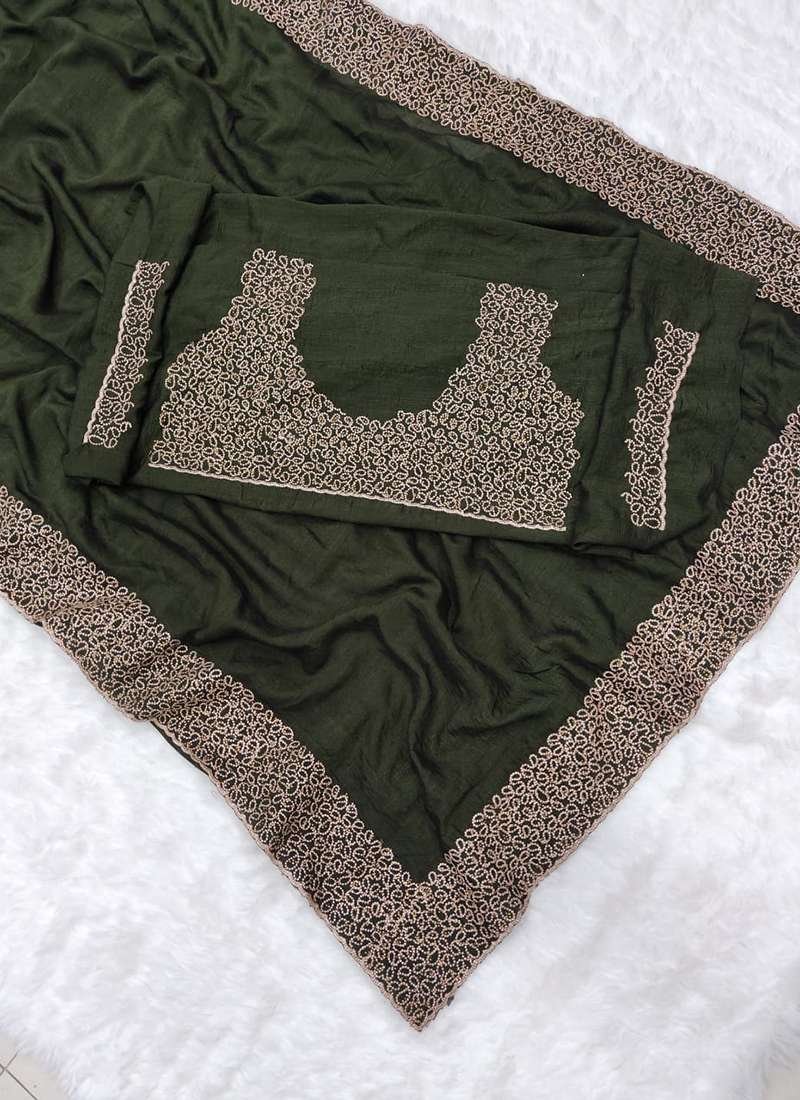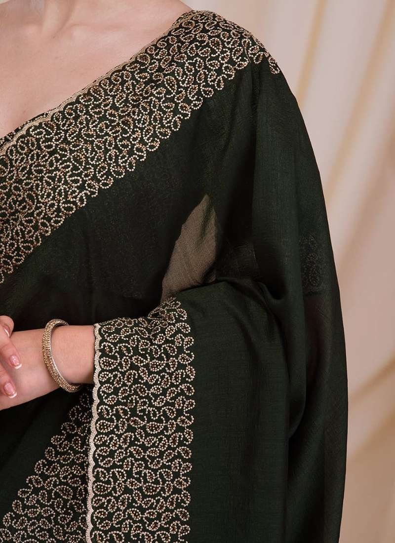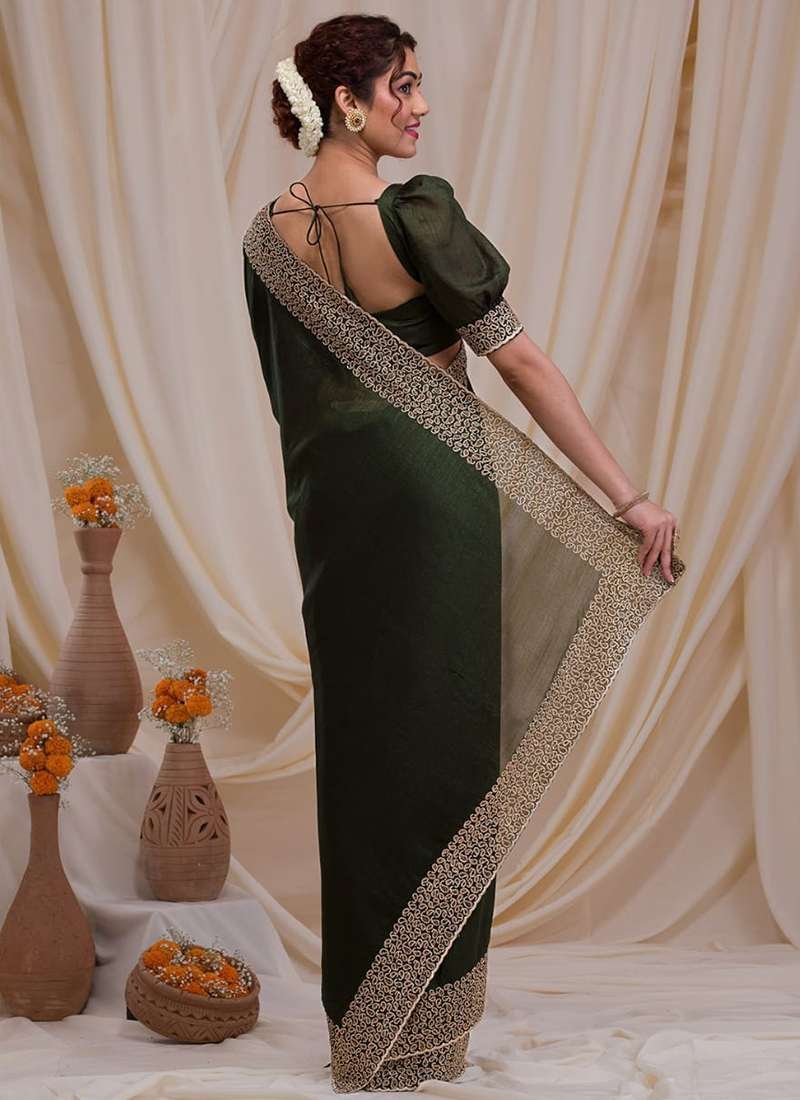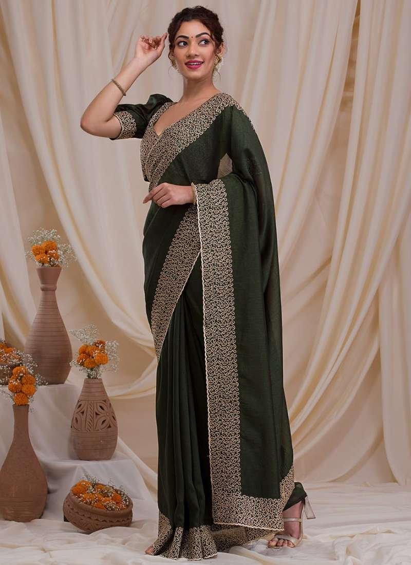 Malhari Blooming Vichitra Green Zari Work Saree