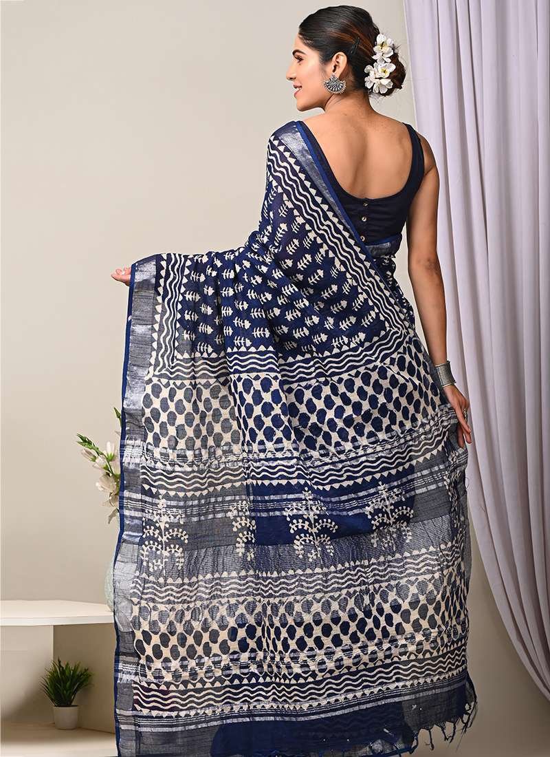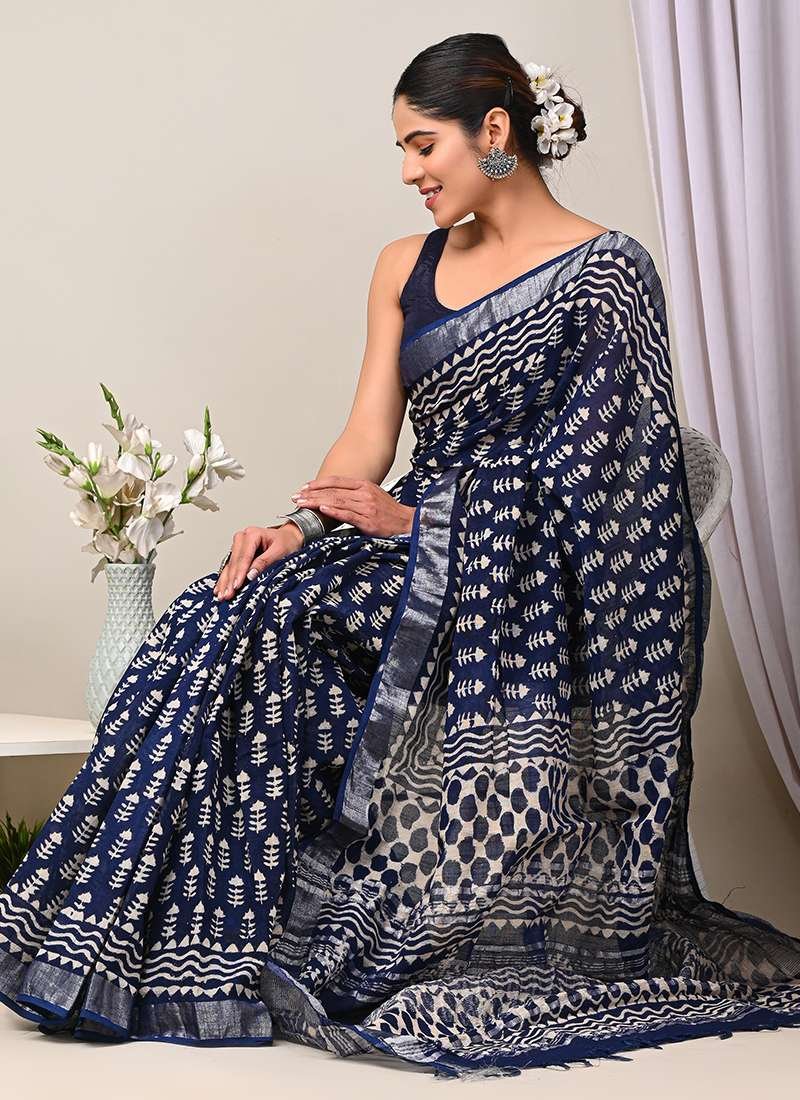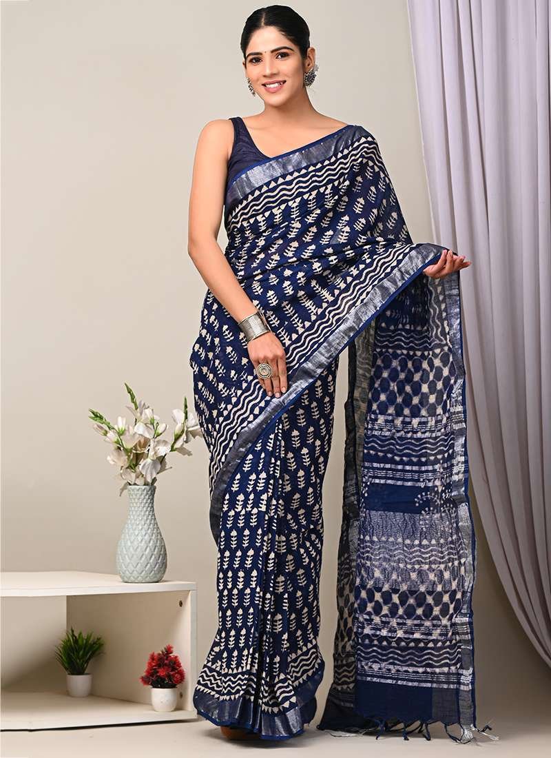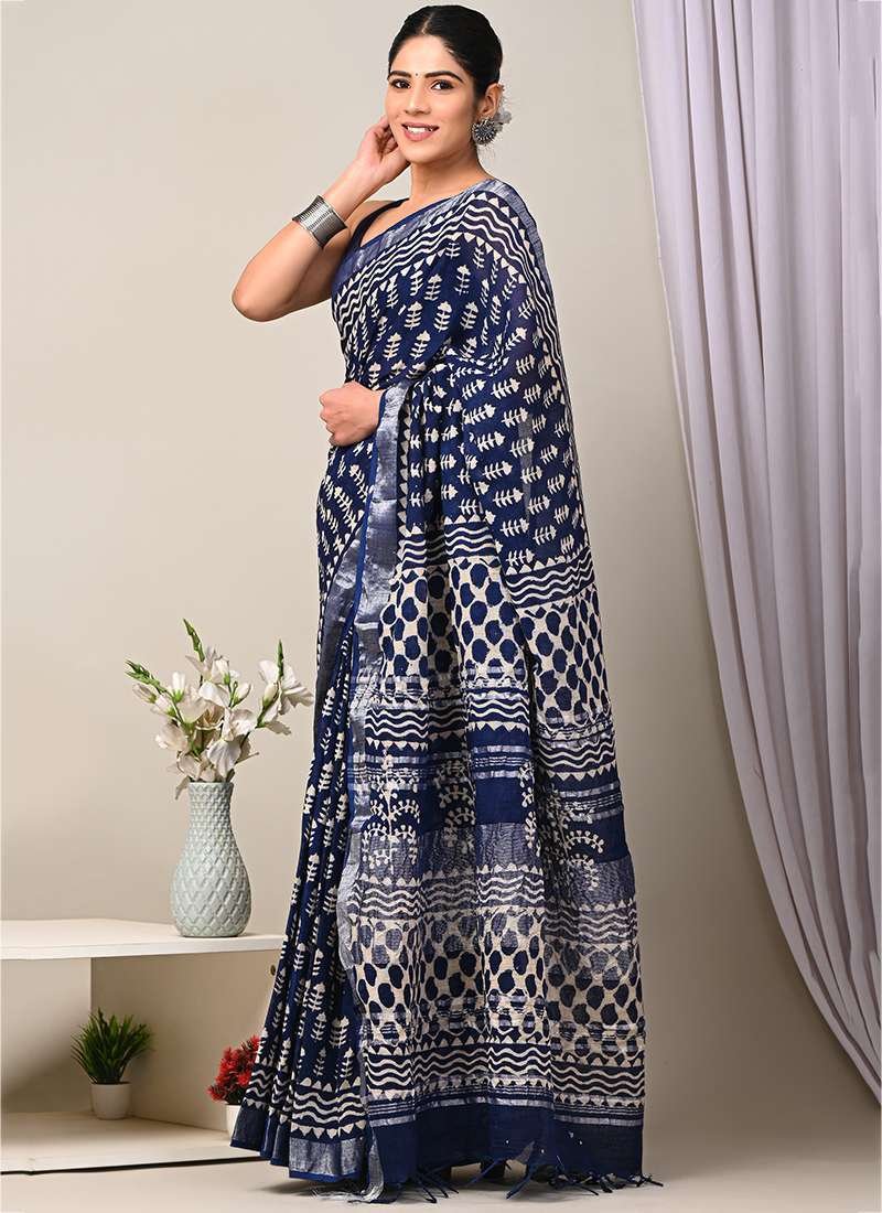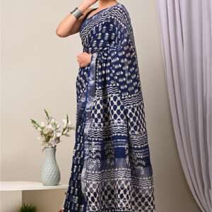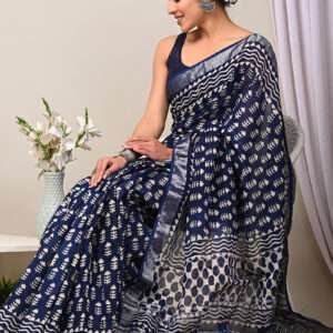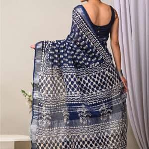 Indulge in the charming allure of our Blue Linen Cotton Casual Wear Bagru Printed Saree. This exquisite saree is crafted from the soft and breathable fabric of linen cotton, adorned with intricate Bagru prints that evoke the artistry of traditional Indian craftsmanship. The vibrant blue hue adds a touch of elegance and sophistication, making it perfect for casual or special occasions. The saree’s ethereal drape and delicate prints create a graceful and enchanting silhouette, ensuring you turn heads wherever you go. Note that accessories in the image are for presentation purposes only, and slight color variations may occur.
