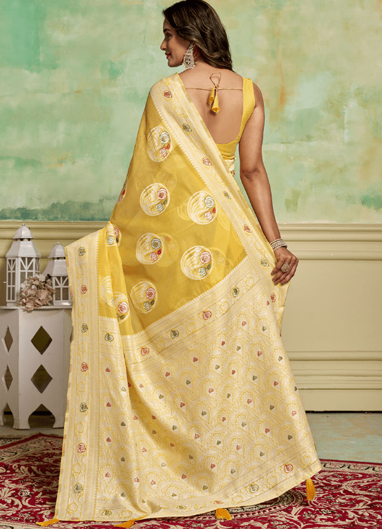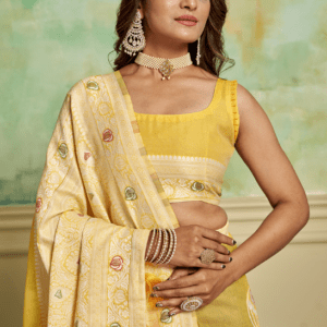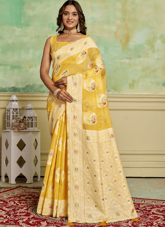 Unveil your elegance with our captivating Cotton Yellow Casual Wear Weaving Saree. Crafted from pure cotton, this exquisite saree offers a soft and lustrous touch that will make you the epitome of grace. Its vibrant yellow hue exudes warmth and radiance, while the intricate weaving adds a touch of timeless beauty. Perfect for casual gatherings, this saree is designed to make you stand out with its vibrant color and elegant drape. Whether you twirl or glide, the saree’s lightweight fabric ensures a comfortable and effortless experience. Note that the accessories shown are for illustrative purposes only, and the actual length may vary slightly. With its subtle yet charming appeal, this Cotton Yellow Casual Wear Weaving Saree is a must-have for any wardrobe.