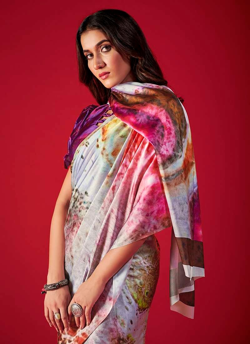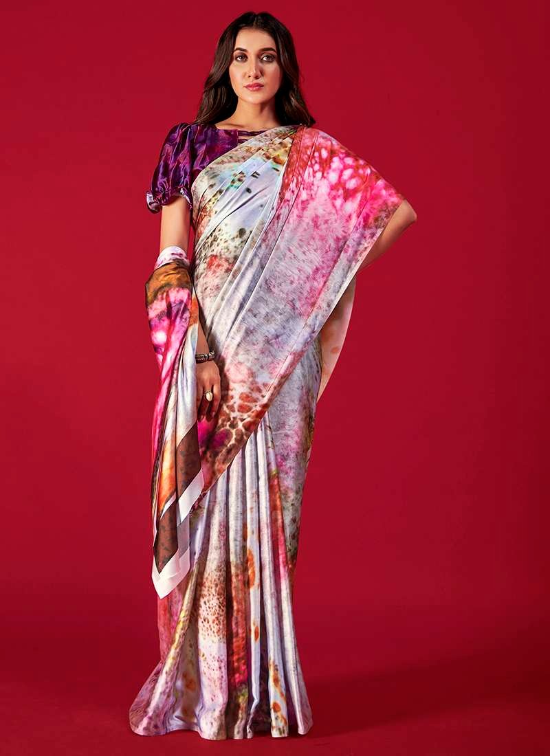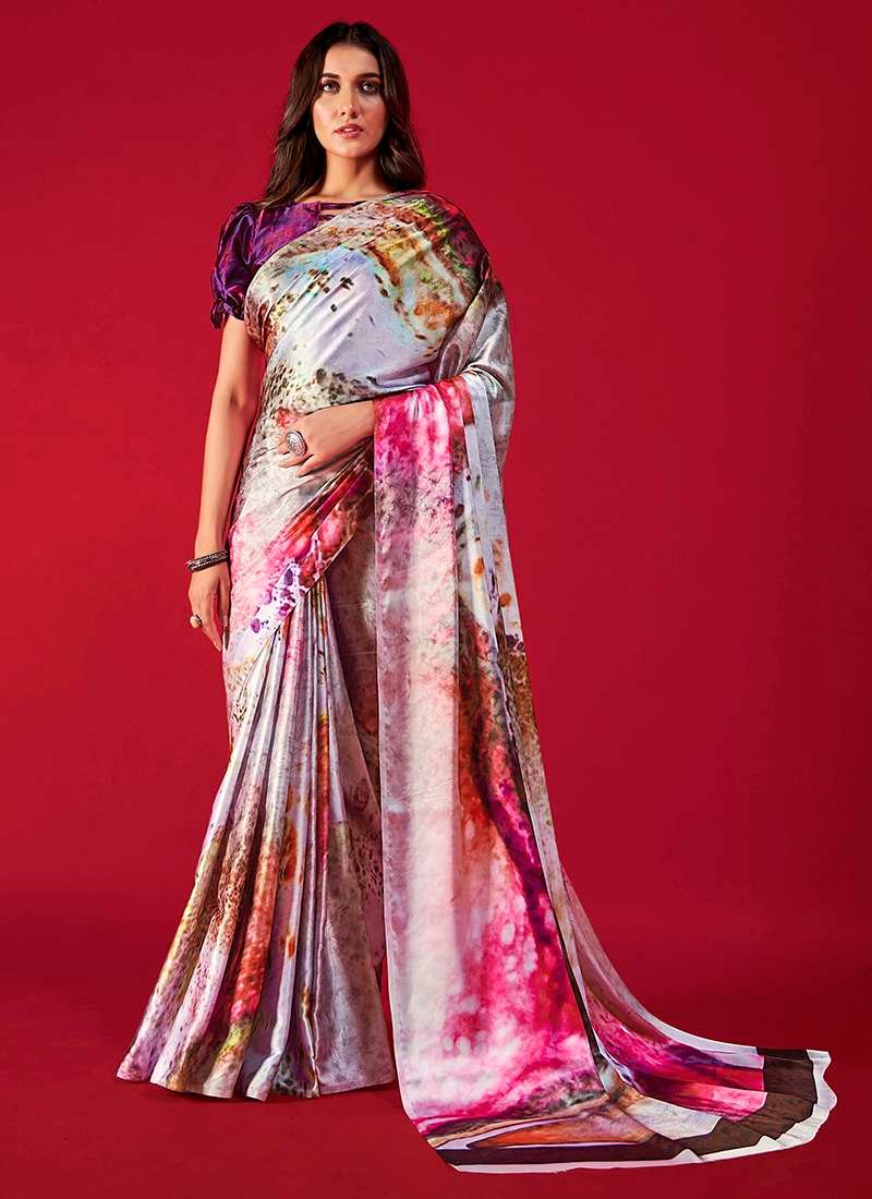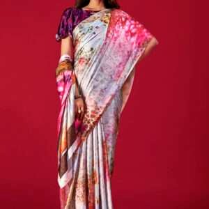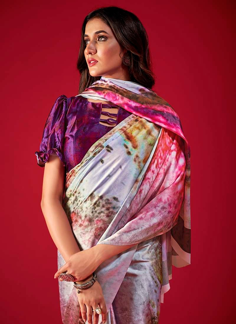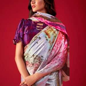 Indulge in the allure of this exquisite Crepe Satin Lilac Party Wear Digital Printed Saree, a captivating ensemble that exudes elegance and sophistication. Crafted from luxurious crepe satin, this lilac-hued saree drapes gracefully over your form, accentuating its beauty. The saree features an eye-catching digital print, adding a touch of vibrant charm to your attire. Perfect for special occasions and festive gatherings, this party wear saree will turn heads and leave a lasting impression. Dry clean the saree after its first wash to maintain its pristine condition. Note that accessory items shown in the image are for presentation purposes only, and the length may vary slightly. Slight variations in the actual color versus the image are possible due to lighting and photography.