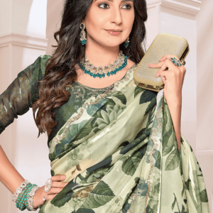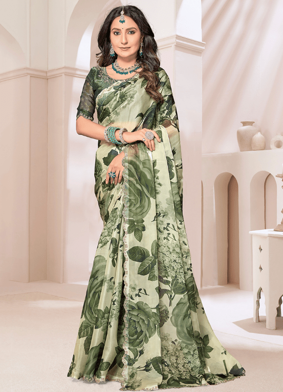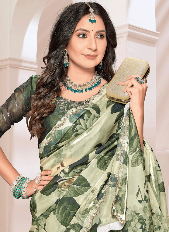 Indulge in the exquisite charm of our Crystal Organza Silk Mehendi Traditional Wear Hand Work Saree, a masterpiece hand-crafted with intricate hand work. Crafted from luxurious crystal organza silk, this saree shimmers with an ethereal glow, casting a radiant aura around the wearer. Its vibrant Mehendi hue adds a touch of tradition and elegance, making it perfect for special occasions. The intricate hand work adorning the saree showcases the skill and artistry of our master craftsmen, adding a touch of opulence to your ensemble. Pair it with statement jewelry and heels to complete your regal look, leaving an unforgettable impression wherever you go.