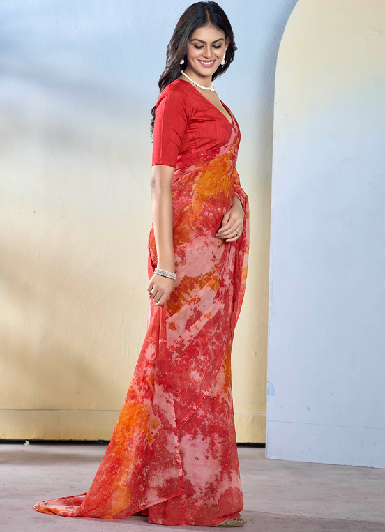 Immerse yourself in elegance with our captivating Georgette Maroon Party Wear Printed Saree. Crafted from the delicate allure of georgette, this exquisite drape features an enchanting symphony of printed motifs that dance upon its maroon canvas. Its vibrant hues and intricate patterns lend a touch of sophistication to any occasion. This mesmerizing attire is perfect for gracing the grandest of parties, adding an air of allure and radiance to your presence. Its flowing silhouette and breathable fabric ensure comfort and grace throughout your evening, making you the epitome of elegance and style. Note that the accessories showcased in the image are solely for illustrative purposes, and the length may vary slightly. Celebrate the beauty of tradition in this enchanting Georgette Maroon Party Wear Printed Saree.