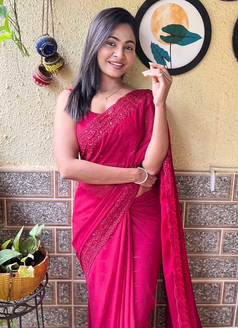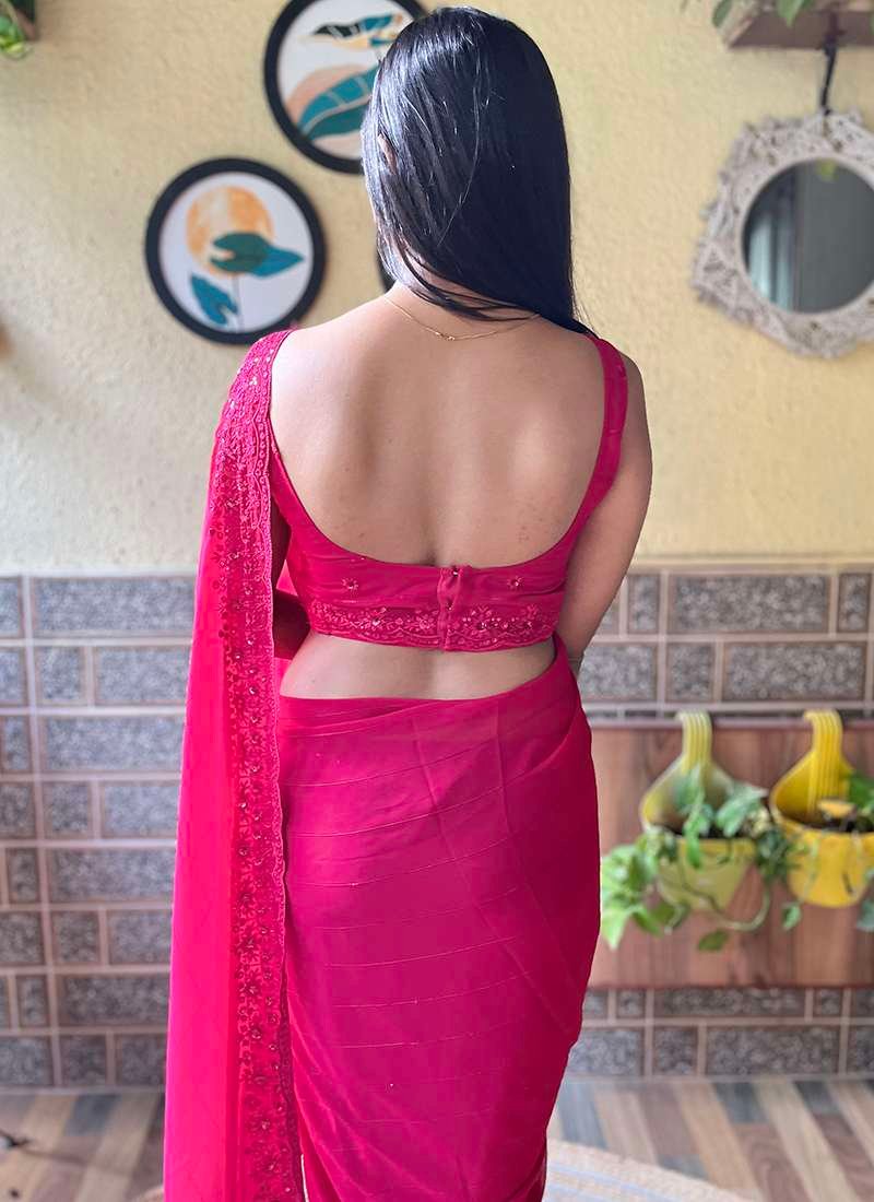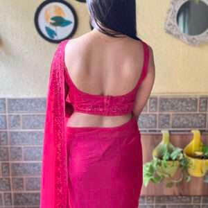 Immerse yourself in the allure of our captivating Georgette Pink Party Wear Sequins Work Saree. Crafted from ethereal georgette, this exquisite ensemble exudes grace and opulence. Its vibrant pink hue invites you to embrace the spotlight, while the intricate sequins work adorning its surface casts an enchanting shimmer that captivates all who gaze upon it. Perfect for grand soirées and special occasions, this saree promises to turn heads and create lasting memories.