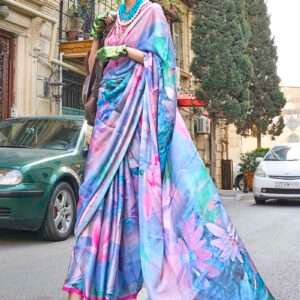 Indulge in the alluring beauty of this Georgette Satin Blue Party Wear Digital Printed Saree. Crafted from luxurious georgette satin, it drapes gracefully over your form, creating an ethereal silhouette. Its captivating blue hue adds a touch of sophistication, while the intricate digital print boasts vibrant motifs that will turn heads. The exquisite craftsmanship ensures durability and a comfortable fit. Embrace the essence of modern elegance with this party-perfect ensemble. Please note that the first wash should be dry cleaned for optimal care. Accessories depicted in the image are for illustrative purposes only, and the actual length may vary slightly.