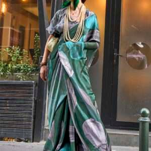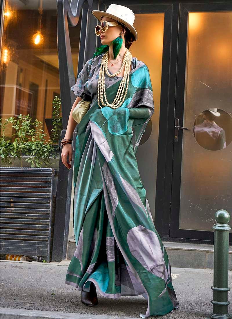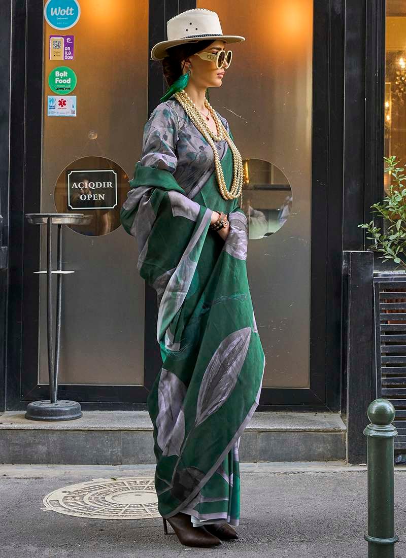 Indulge in the enchanting embrace of our Georgette Satin Green Party Wear Digital Printed Saree. Crafted from the finest Georgette Satin fabric, this exquisite attire exudes grace and sophistication. The intricate digital printed designs dance across the vibrant green fabric, creating a mesmerizing spectacle. Perfect for any grand occasion, this saree will elevate your presence with its ethereal beauty. The first wash requires dry cleaning, ensuring the garment’s longevity and delicate nature. Note that accessories portrayed in the image are solely for display purposes, and the length may vary slightly.