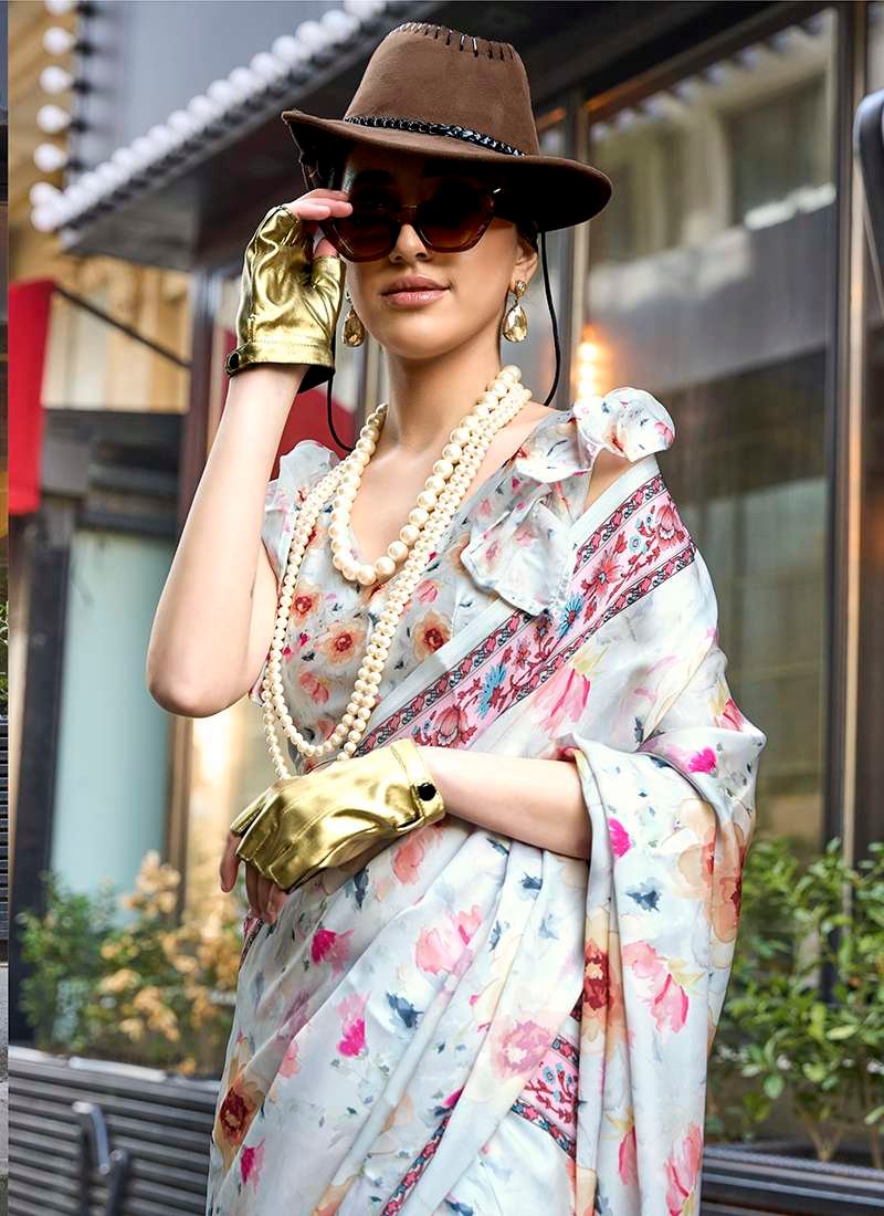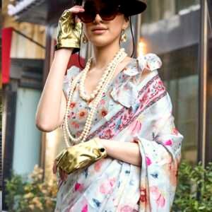 Indulge in the ethereal allure of this exquisite Georgette Satin Sky Blue Party Wear Digital Printed Saree. Crafted from luxurious georgette satin, this stunning attire flows effortlessly with its sky blue hue, adorned with intricate digital prints that dance across its surface. Perfect for grand occasions, this saree showcases the vibrant spirit of Indian artistry. The delicate fabric drapes elegantly, accentuating your curves while maintaining a graceful silhouette. Note that professional dry cleaning is recommended for the first wash to preserve its pristine beauty. Please acknowledge that the accessories in the image are solely for presentation purposes, and the length may vary slightly. Embrace the captivating charm of this party wear saree and make a captivating statement at your next special event.