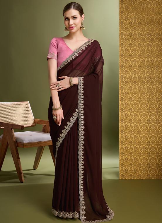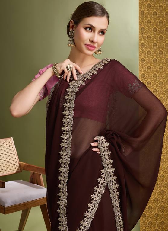 Malhari Georgette Wine Party Wear Embroidery Work Saree
