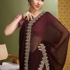 Indulge in the captivating allure of our Georgette Wine Party Wear Embroidery Work Saree, a masterpiece designed to turn heads. Crafted from the finest georgette fabric, this wine-hued saree exudes elegance and sophistication. Its intricate embroidery work, meticulously executed, adds a touch of opulence that is sure to make you the center of attention. Perfect for any grand occasion, this saree will elevate your presence and leave an unforgettable impression. Embrace the essence of grace and glamour with this exquisite ensemble, a testament to the artistry of traditional Indian craftsmanship.