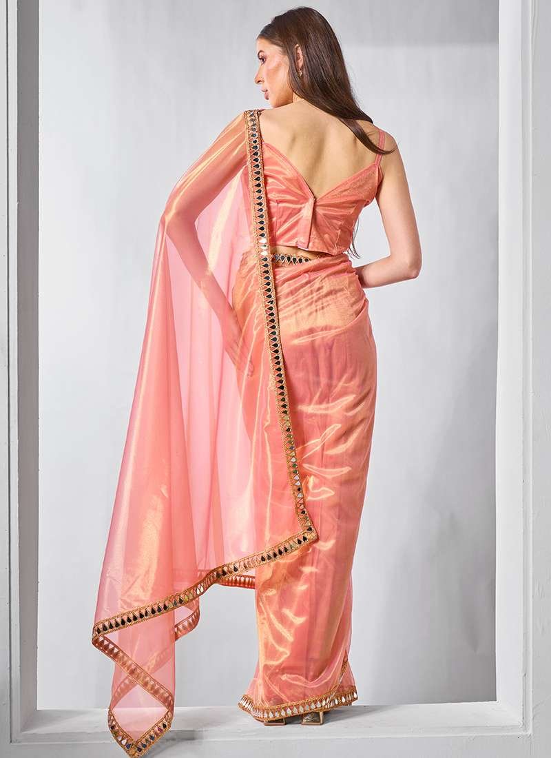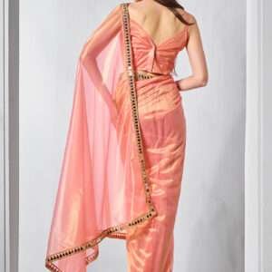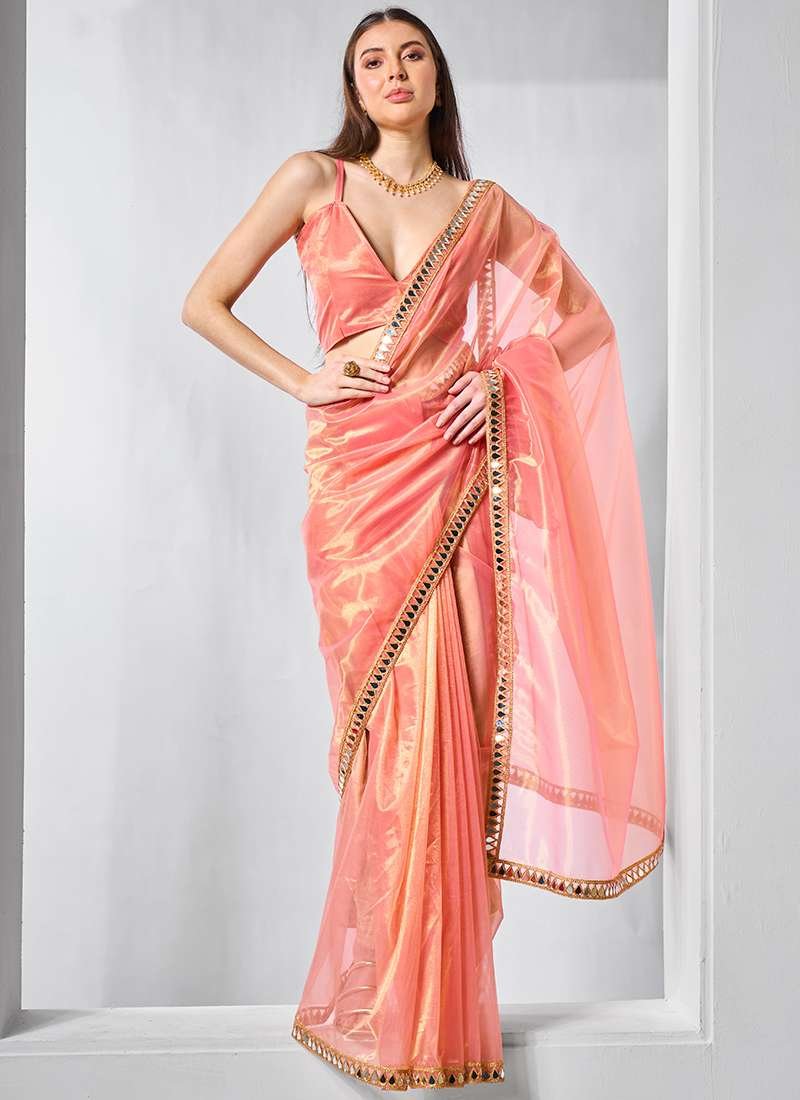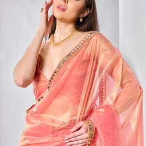 Enrich your ceremonial wardrobe with our exquisite Gold Tissue Net Orange Saree. Crafted from opulent gold tissue net, this ethereal creation features intricate lace work that adds a touch of elegance and sophistication. The vibrant orange hue exudes warmth and vibrancy, making it perfect for auspicious occasions. The intricate lace embellishments meticulously adorn the saree, creating a mesmerizing and eye-catching design. Whether it’s a traditional ceremony or a grand festive celebration, this ceremonial wear masterpiece will make a statement and leave an unforgettable impression.