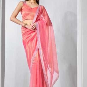 Introducing our exquisite Gold Tissue Net Pink Ceremonial Wear Lace Work Saree, a masterpiece crafted for grand occasions. Draped in shimmering pink tissue net, this ethereal saree exudes elegance and opulence. Its intricate lace work, meticulously hand-stitched, transforms the fabric into a breathtaking tapestry of beauty. The intricate motifs dance over the saree’s surface, adding a touch of timeless charm. With its flawless craftsmanship, this saree drapes effortlessly around the body, enhancing every curve for a supremely flattering silhouette. Perfect for weddings, receptions, and other ceremonial events, this Gold Tissue Net Pink Ceremonial Wear Lace Work Saree will turn heads and leave an unforgettable impression.