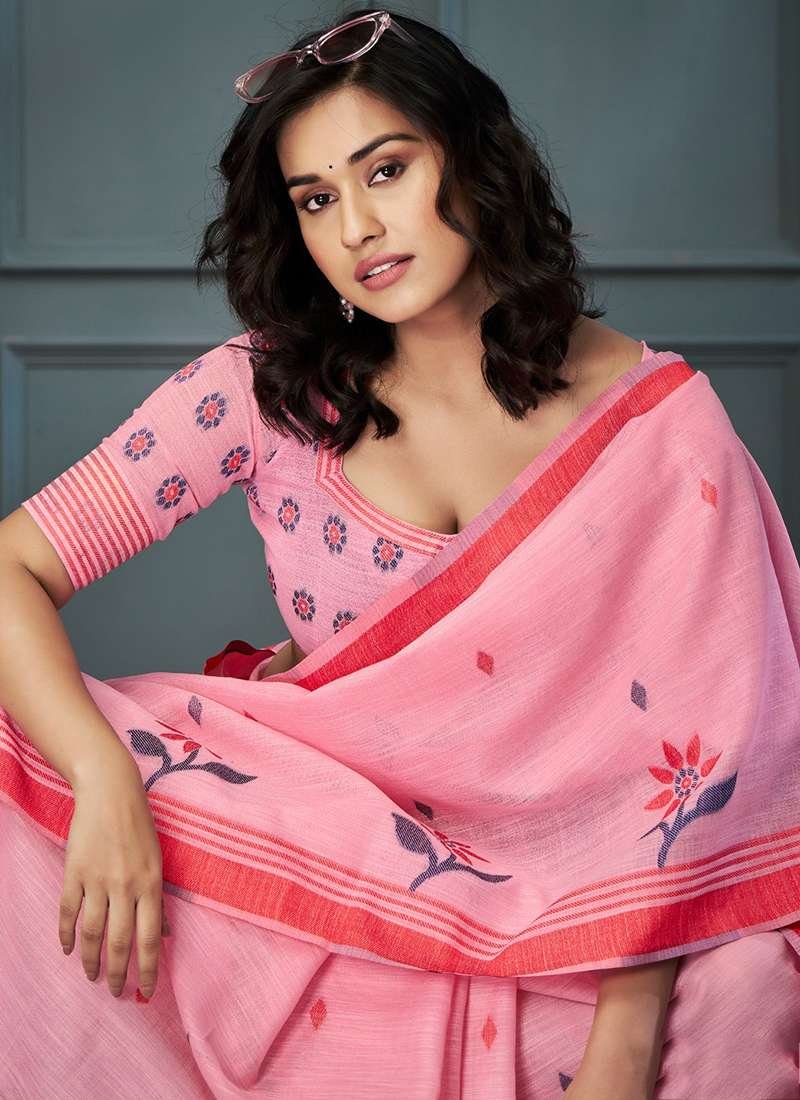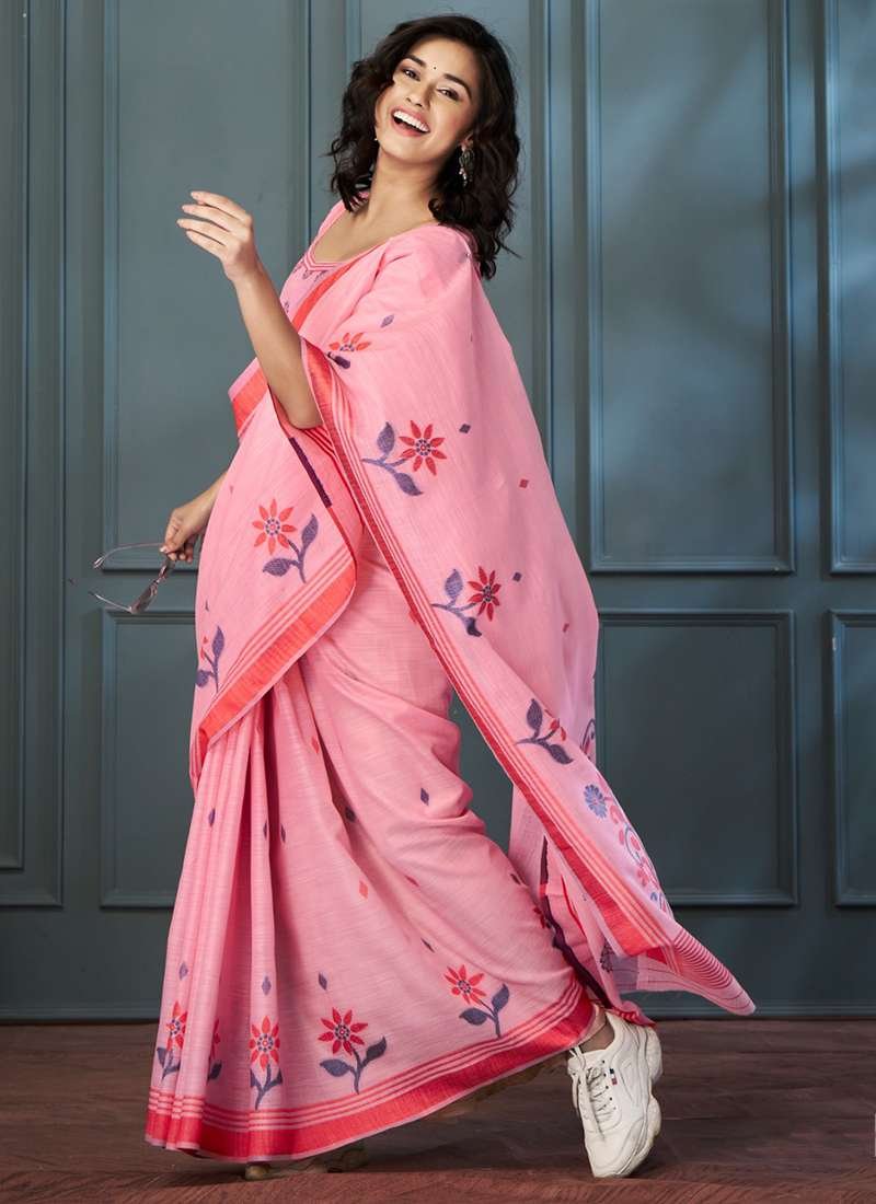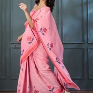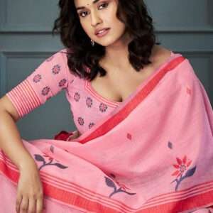 Indulge in the exquisite beauty of our Handloom Linen Pink Casual Wear Weaving Saree. This ethereal drape is crafted from premium handloom linen, offering a soft and breathable feel. Its delicate pink hue exudes femininity and grace, while the intricate weaving adds a touch of sophistication to any occasion. Perfect for casual gatherings or everyday wear, this saree’s weaving complements the pink base, creating a stunning visual appeal. Its versatile design makes it a timeless wardrobe staple, ensuring you radiate elegance wherever you go. Experience the rich heritage of Indian craftsmanship with this captivating Handloom Linen Pink Casual Wear Weaving Saree. Note that the first wash requires dry cleaning and the accessories shown in the image are for presentation purposes only.
