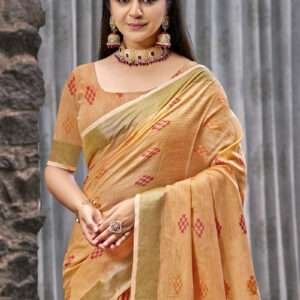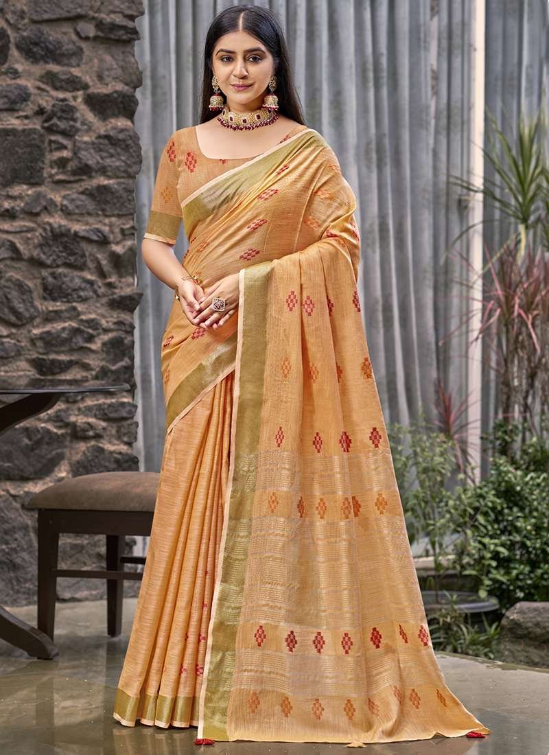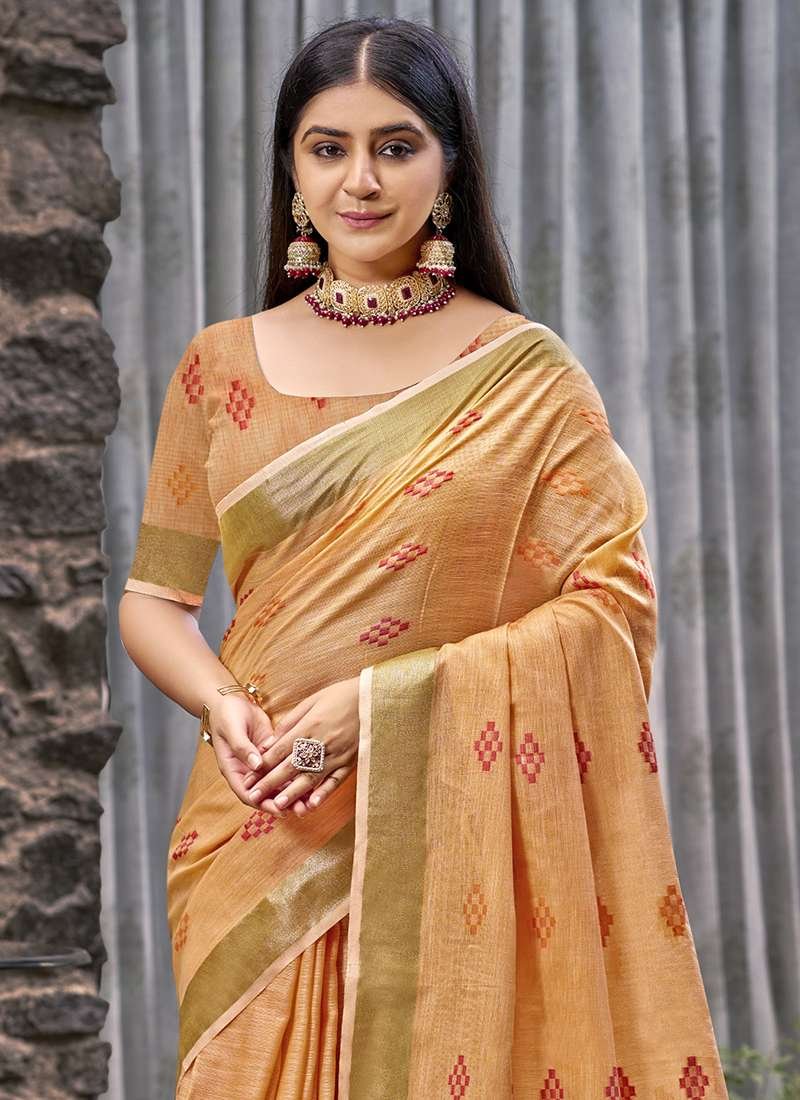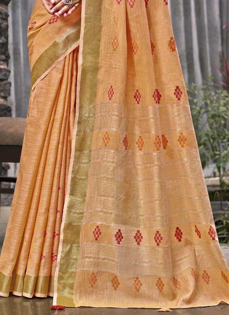 • linen Sarees In light orange