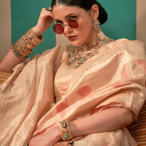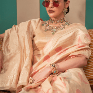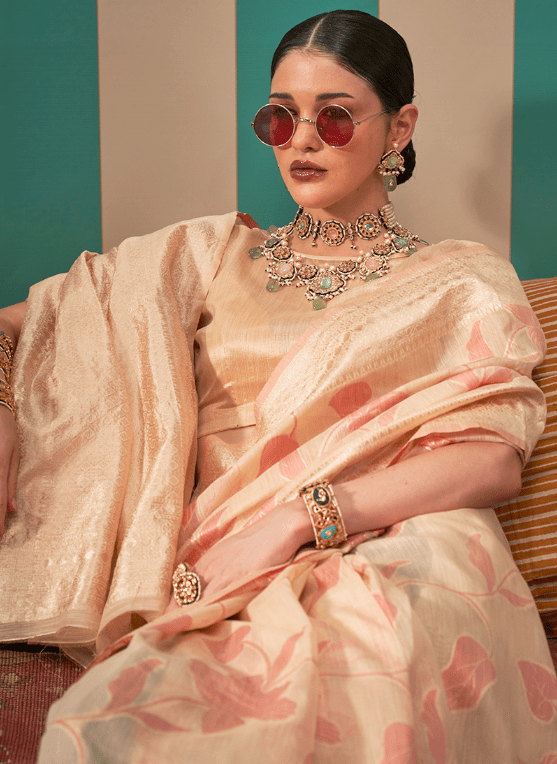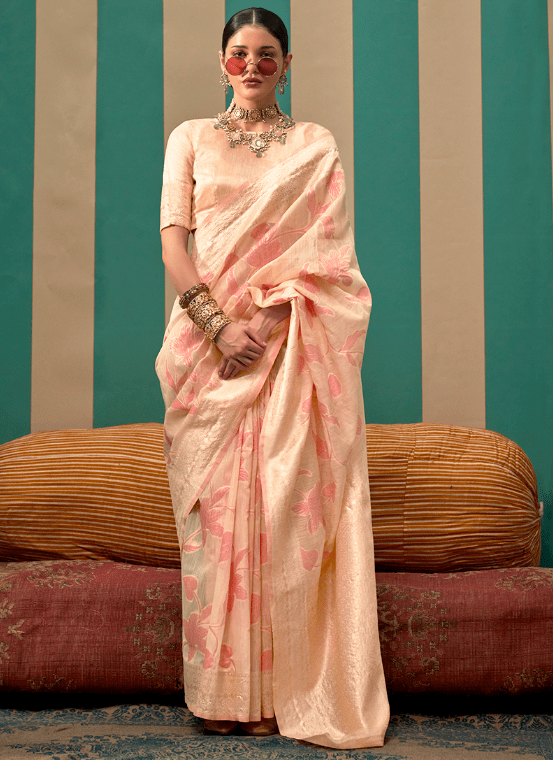 Indulge in the ethereal beauty of our Linen Light Peach Festival Wear Weaving Saree. Crafted from the finest linen fabric, this exquisite saree flows effortlessly with a delicate light peach hue. The intricate weaving adorns the saree, adding a touch of allure and sophistication. Ideal for festive occasions, this ensemble exudes elegance and charm. The saree comes with a complementary blouse piece, enhancing its versatility. Note that the first wash requires dry cleaning, and the accessories shown in the image are for presentation purposes only.