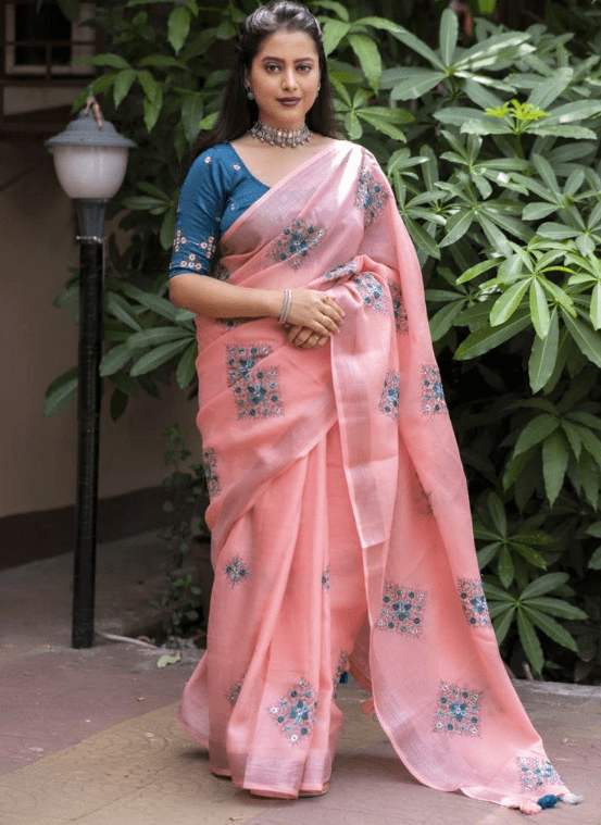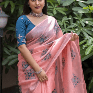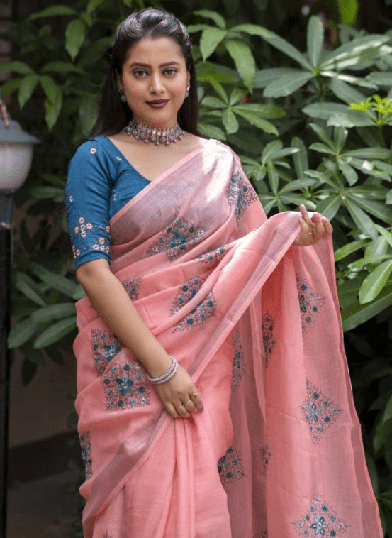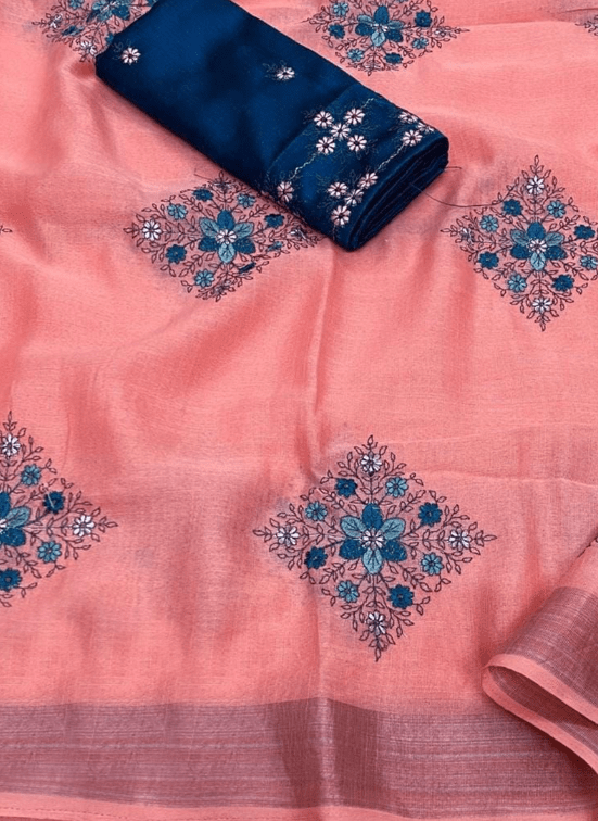 Indulge in the ethereal charm of our exquisite Linen Peach Festival Wear Weaving Saree. Crafted from the finest linen fabric, this saree exudes a subtle elegance that is both timeless and alluring. The intricate weaving work adorns the fabric with delicate patterns, adding a touch of captivating embellishment to your festive ensemble. Perfect for grand occasions, this peach-hued masterpiece makes a statement with its rich color and opulent drape. The airy linen material ensures effortless breathability and comfort, keeping you radiant and poised throughout your celebration.