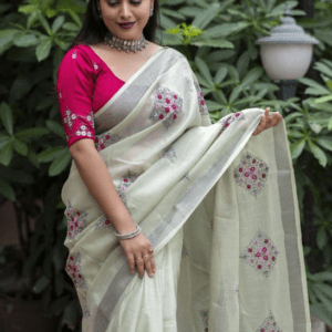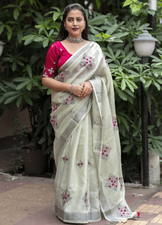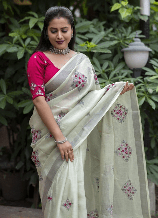 Immerse yourself in the ethereal beauty of our Linen Pista Green Festival Wear Weaving Saree. Crafted from pure linen, this exquisite drape exudes an air of effortless elegance. The vibrant pista green hue adds a touch of festive cheer, making it perfect for any grand occasion. Adorned with intricate weaving, this saree is a testament to traditional artistry. Its lightweight fabric ensures all-day comfort, allowing you to dance and celebrate without any hindrance. Elevate your festival wardrobe with this stunning creation that combines style and sophistication effortlessly.