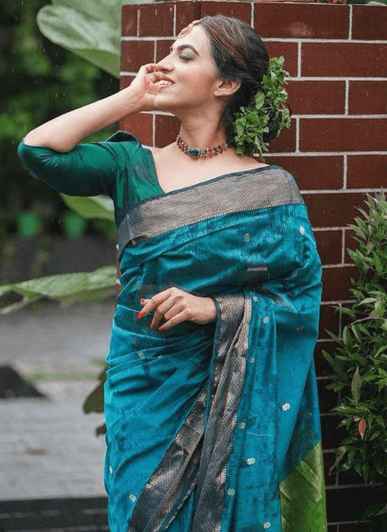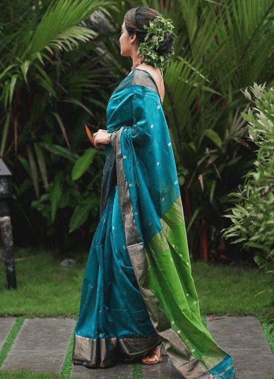 Indulge in the epitome of comfort and elegance with our Linen Rama Casual Wear Weaving Saree. Crafted from the finest linen, this exquisite saree promises a breathable and graceful drape. Its unique weaving technique enhances its charm, creating an eye-catching pattern that adds a touch of sophistication to your ethnic wardrobe. Whether it’s for a casual gathering or a special occasion, this saree is the perfect choice for those who seek understated luxury and versatile style. Note: Accessories shown for presentation purposes only; slight color variations may occur; length may vary up to 2 inches; dry cleaning is recommended for the first wash.
