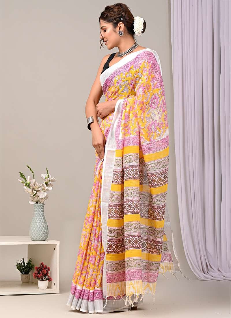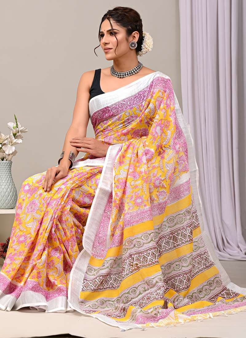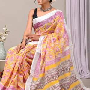 Indulge in the epitome of vibrant elegance with our Multi Color Linen Cotton Casual Wear Bagru Printed Saree. Crafted from the softest linen and cotton blend, this exquisite drape exudes effortless charm. Its vibrant hues and captivating Bagru prints add a touch of artisanal allure to any casual ensemble. The breathable fabric ensures all-day comfort, making it perfect for effortlessly chic wear. Treat this saree to a delicate dry clean for its first wash to preserve its pristine quality. Embrace the bohemian spirit and add a touch of ethnic artistry to your wardrobe with this enchanting creation.