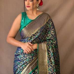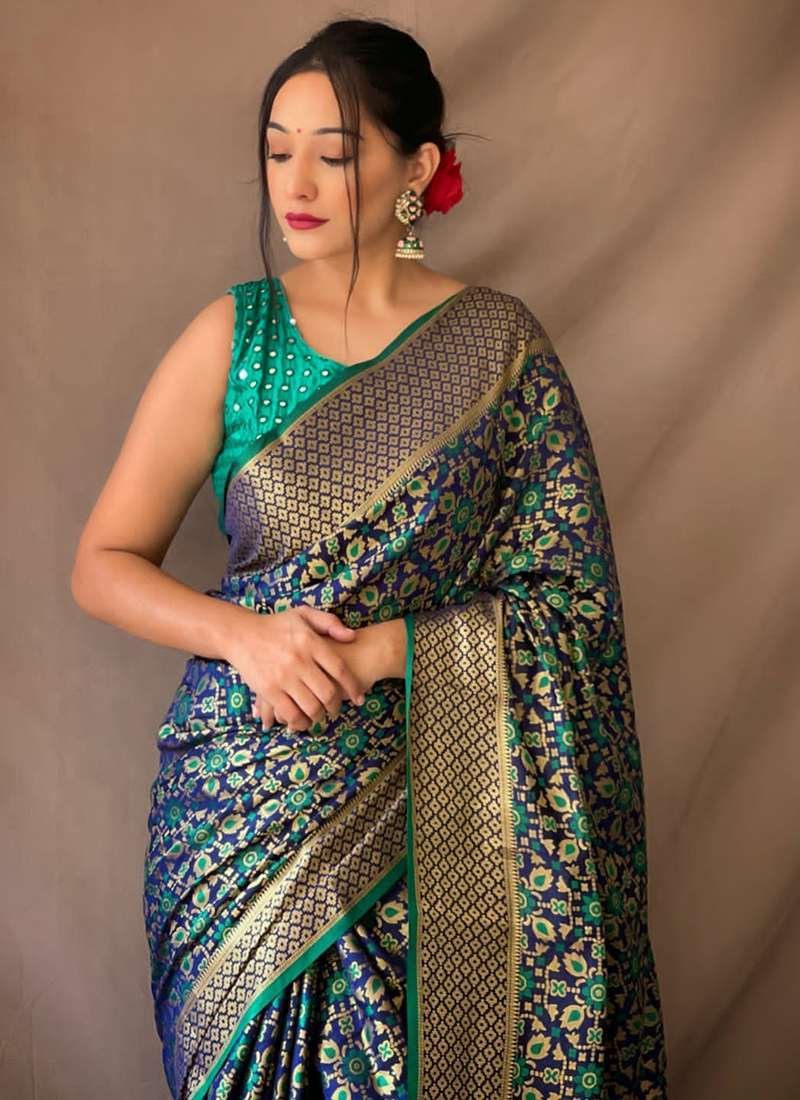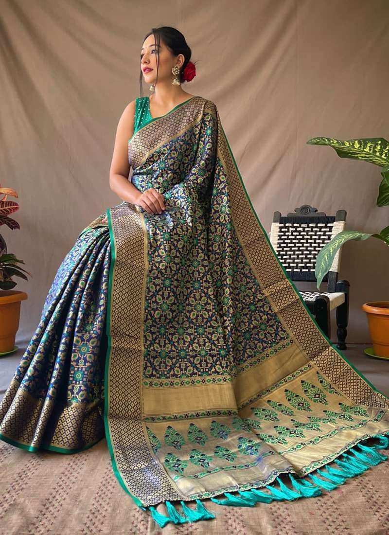 Indulge in the exquisite beauty of our Multi-Color Patola Silk Festival Wear Weaving Saree. Woven in vibrant hues, this traditional Indian garment is crafted from luxurious patola silk, renowned for its opulent drape and shimmering luster. Its elaborate weaving technique creates intricate patterns that dance upon the fabric, making it a true work of art. Perfect for any grand occasion, this saree will elevate your style and turn heads wherever you go. The vibrant colors and intricate craftsmanship will leave you feeling radiant and confident, making this saree a timeless piece to add to your wardrobe.