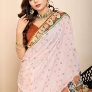 1. Elevate your daily wear wardrobe with this exquisite muslin cotton saree in a vibrant orange hue. Crafted from high-quality muslin cotton, this saree features intricate printed designs that enhance its overall appeal, making it a perfect choice for casual outings or everyday elegance.