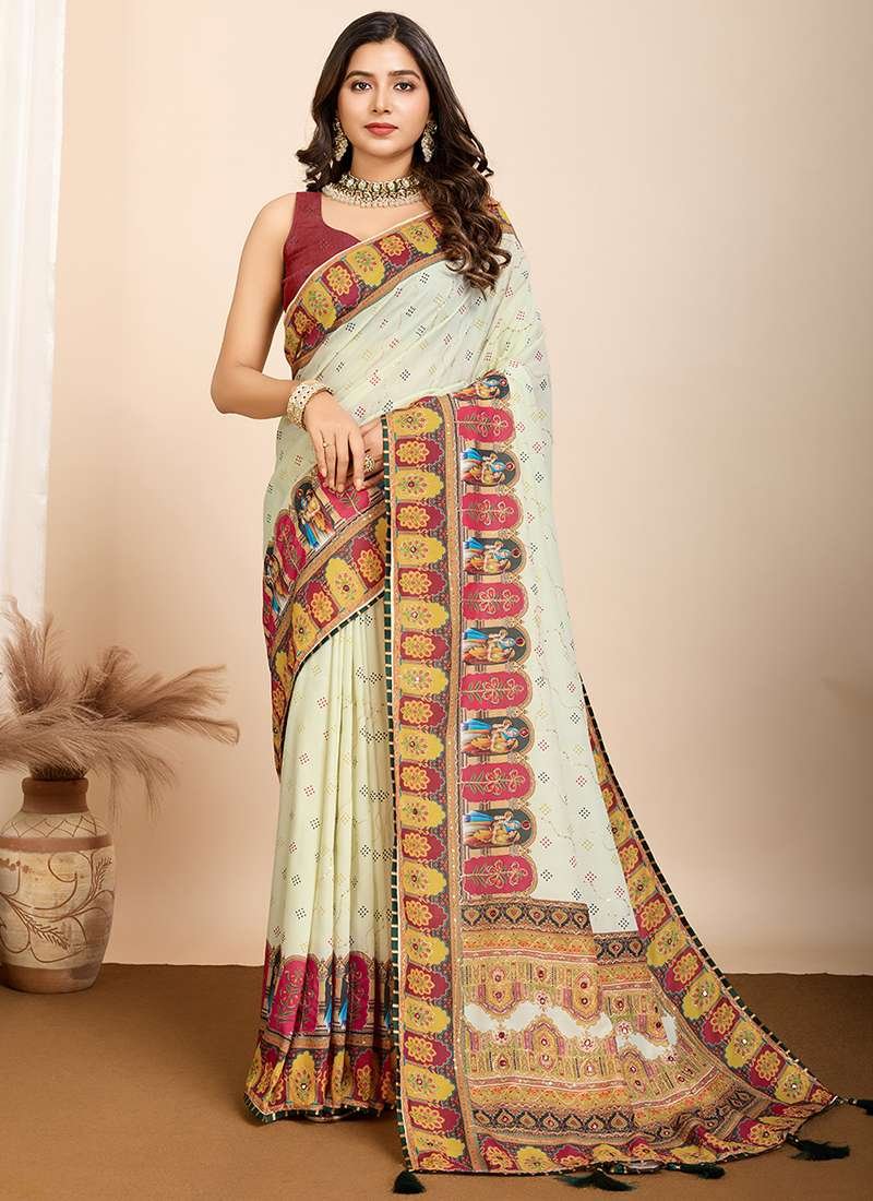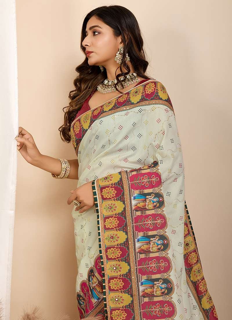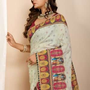 1. Elevate your daily wear wardrobe with this exquisite muslin cotton saree in a vibrant yellow hue. Designed for comfort and style, this saree features intricate printed patterns that enhance its overall appeal, making it a perfect choice for casual outings or everyday elegance.
