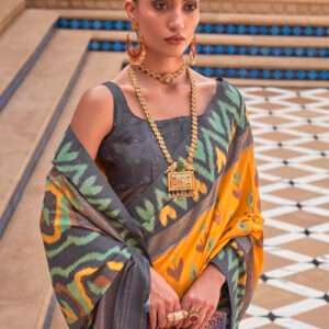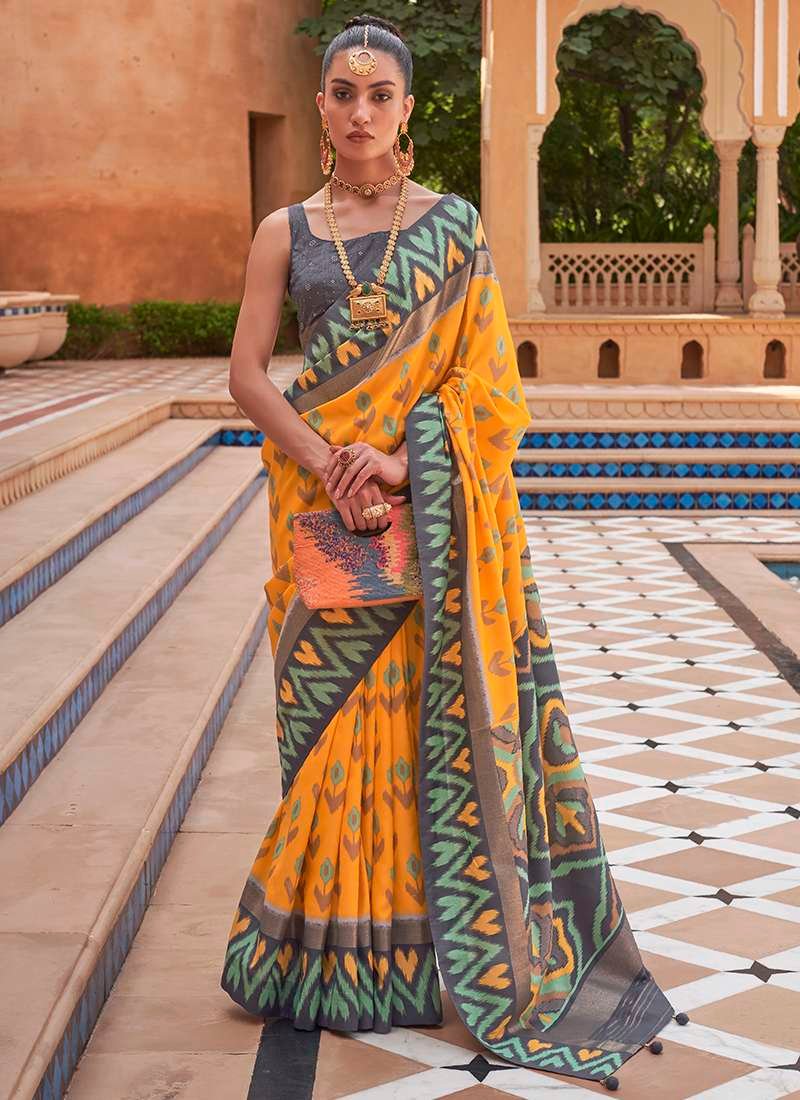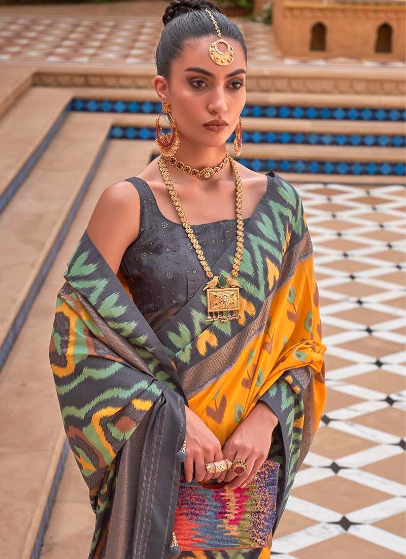Indulge in the allure of our exquisite Mustard Silk Festival Wear Patola Saree, an unparalleled masterpiece crafted from the finest silk fabric. Shimmering in a vibrant mustard hue, this exceptional saree adds a touch of regal sophistication to any festive occasion. Intricately adorned with intricate patola motifs, its vibrant patterns evoke the festive spirit, making it a stunning choice for celebrations and special events. Experience the luxurious drape and soft feel of pure silk, adorned with exquisite embellishments that are sure to turn heads. Elevate your ethnic wardrobe with this captivating saree and embrace the essence of Indian tradition in style.