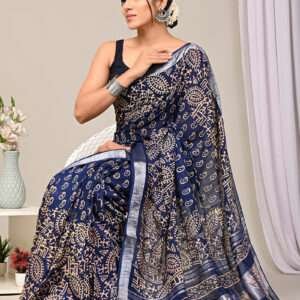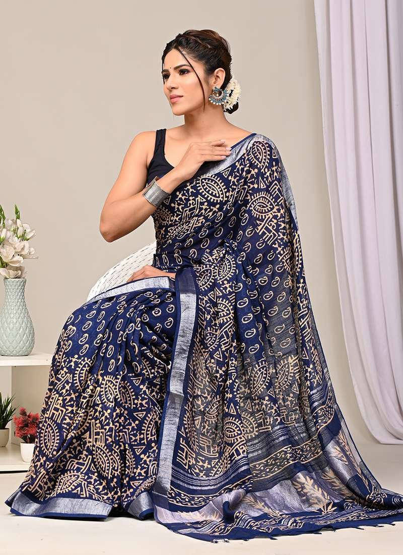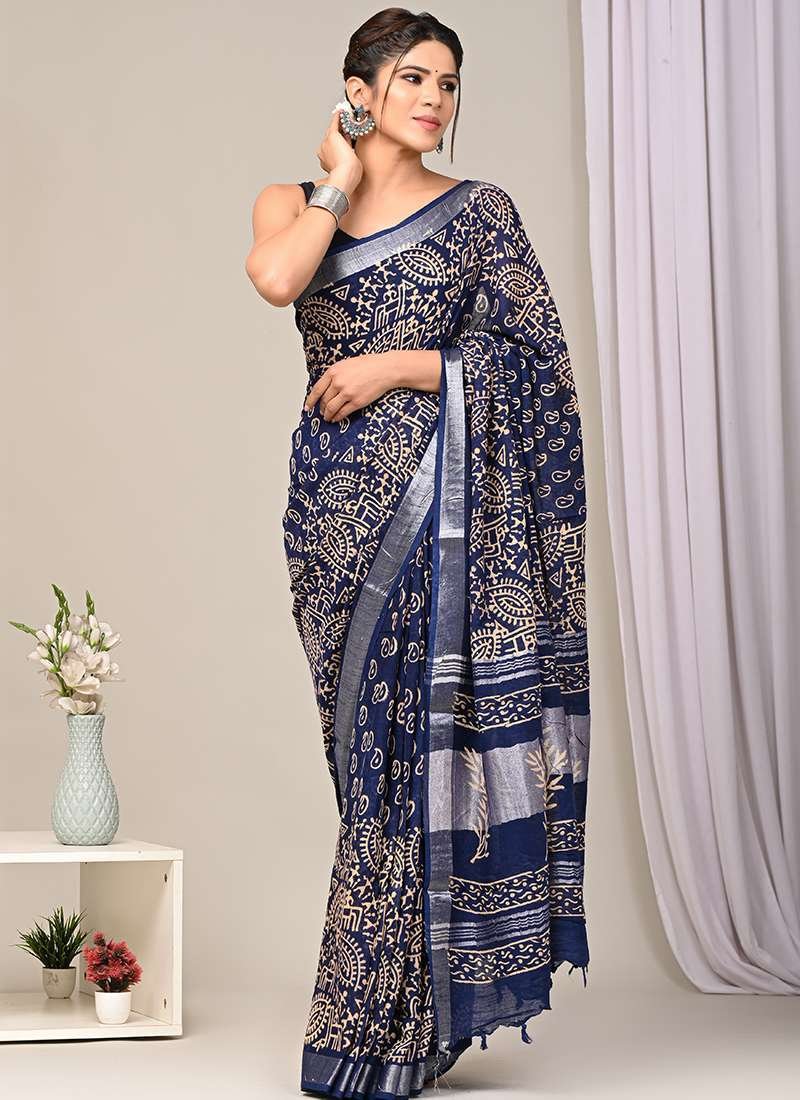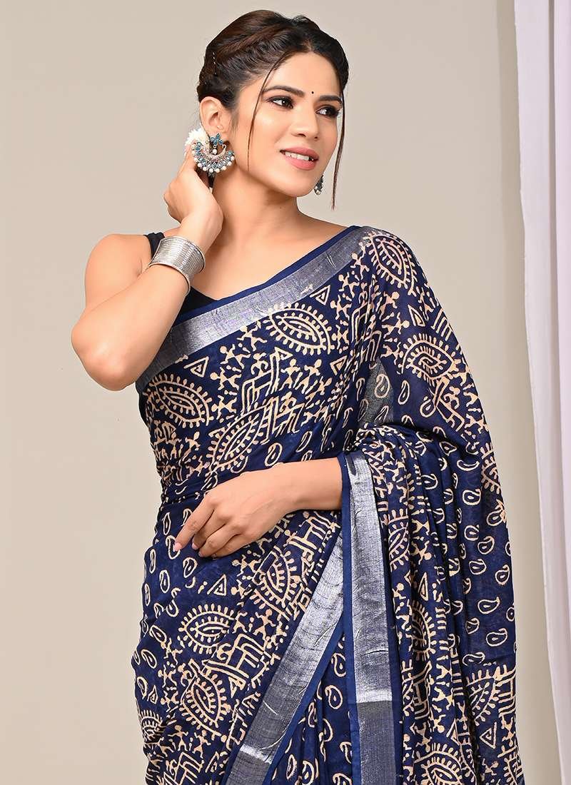Indulge in the exquisite charm of our Navy Blue Linen Cotton Casual Wear Bagru Printed Saree. This elegant drape is crafted from a luxurious blend of linen and cotton, providing both breathability and a soft touch. Its captivating navy blue hue serves as a backdrop for intricate Bagru prints, adding an artisanal flair to your wardrobe. Perfect for casual gatherings, this saree exudes an effortless sophistication that will turn heads wherever you go. Note: For optimal care, please dry clean it for the first wash.