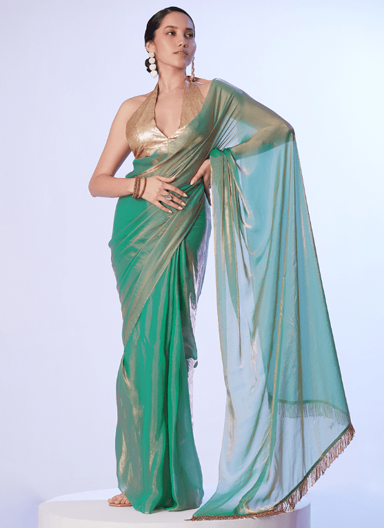 • organza Sarees In sea green