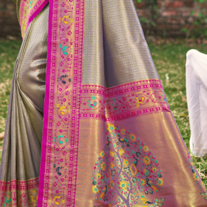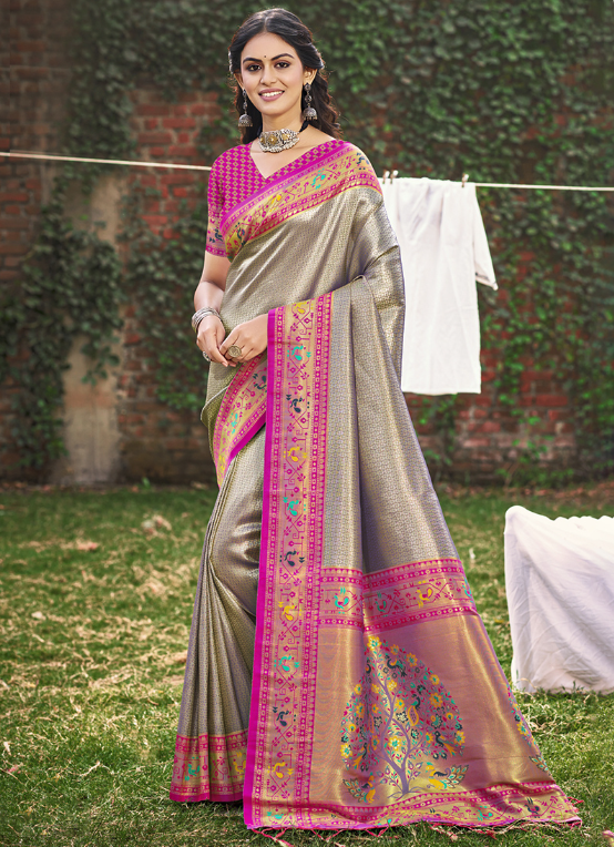 Malhari Paithani Silk Grey Party Wear Weaving Saree