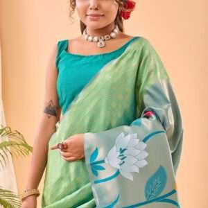 Immerse yourself in the vibrant splendor of our exquisite Pista Green Paithani Silk Festival Wear Weaving Saree. This magnificent drape embodies the rich cultural heritage of Indian craftsmanship, adorned with intricate weaving that adds a touch of elegance to your attire. Crafted from the finest paithani silk, it promises a luxurious and comfortable feel against your skin. Perfect for festive occasions, this saree exudes a regal charm that will turn heads wherever you go. Its vibrant pista green hue radiates an aura of freshness and exuberance, making it an ideal choice for celebrating special moments.