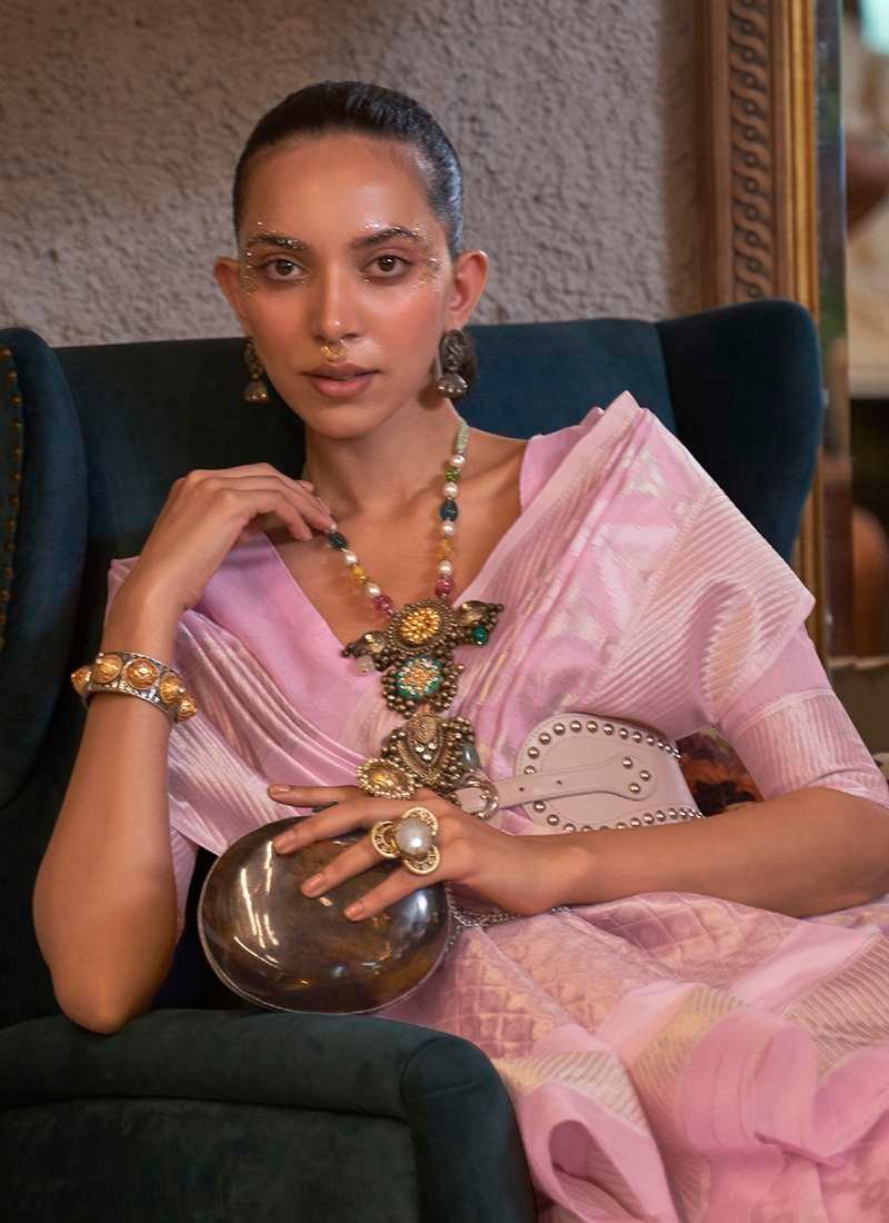 • pure linen Sarees In pink