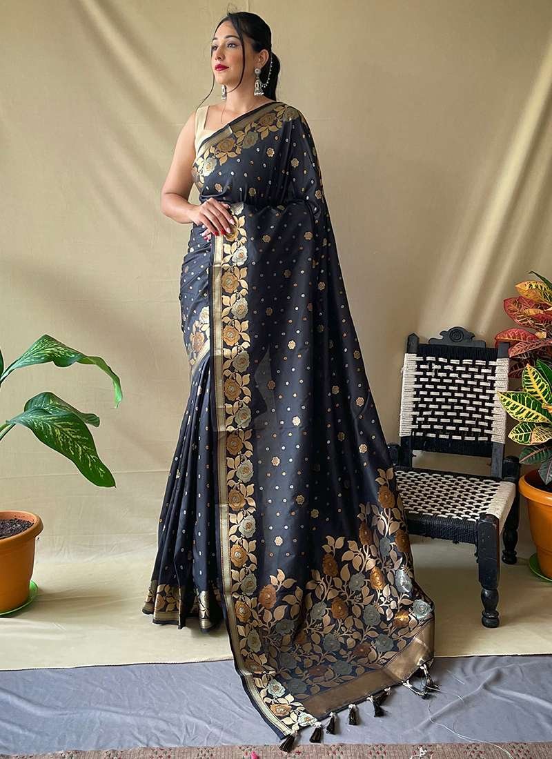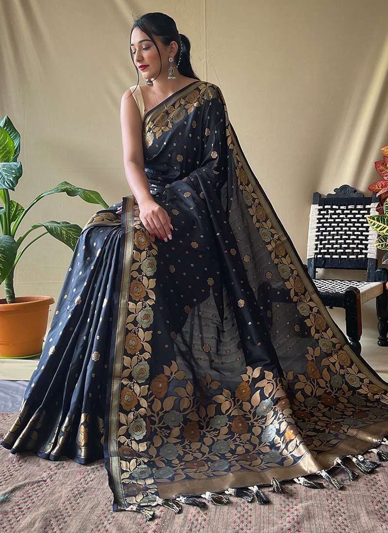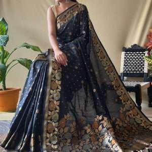 Malhari Pure Dola Viscose Navy Blue Zari Work Saree