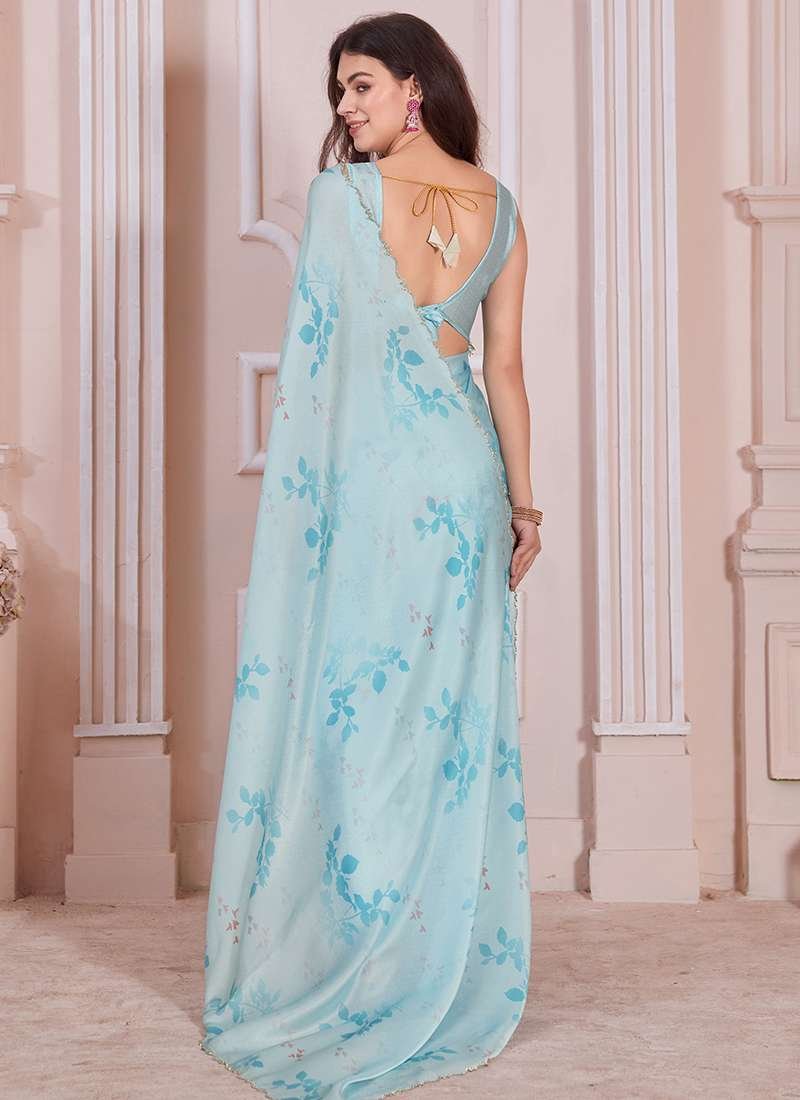 Indulge in the ethereal beauty of our Pure Satin Georgette Light Blue Casual Wear Digital Printed Saree. This captivating creation is meticulously crafted from the softest satin georgette, draping gracefully over your body in a symphony of delicate hues. The saree features an exquisite digital print that dances across its expanse, imbuing it with an air of artistry. The subtle sheen of the fabric adds a touch of sophistication, elevating it from a casual wear staple to an elegant ensemble. Whether you’re attending a day event or an evening soiree, this saree promises to turn heads and make a lasting impression.