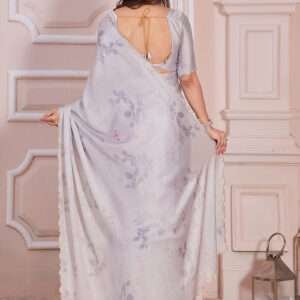Experience the ethereal elegance of our Pure Satin Georgette Light Grey Casual Wear Digital Printed Saree. Crafted from the finest pure satin georgette, this stunning saree drapes effortlessly, creating a graceful and flowing silhouette. The striking digital print adds a touch of modern sophistication, featuring intricate patterns in harmonious shades of light grey. Perfect for casual gatherings and everyday wear, this saree exudes a subtle and timeless charm. Note: Accessories in the image are for representation only. Length may vary up to 2 inches. Color may slightly differ from the image due to screen calibration.