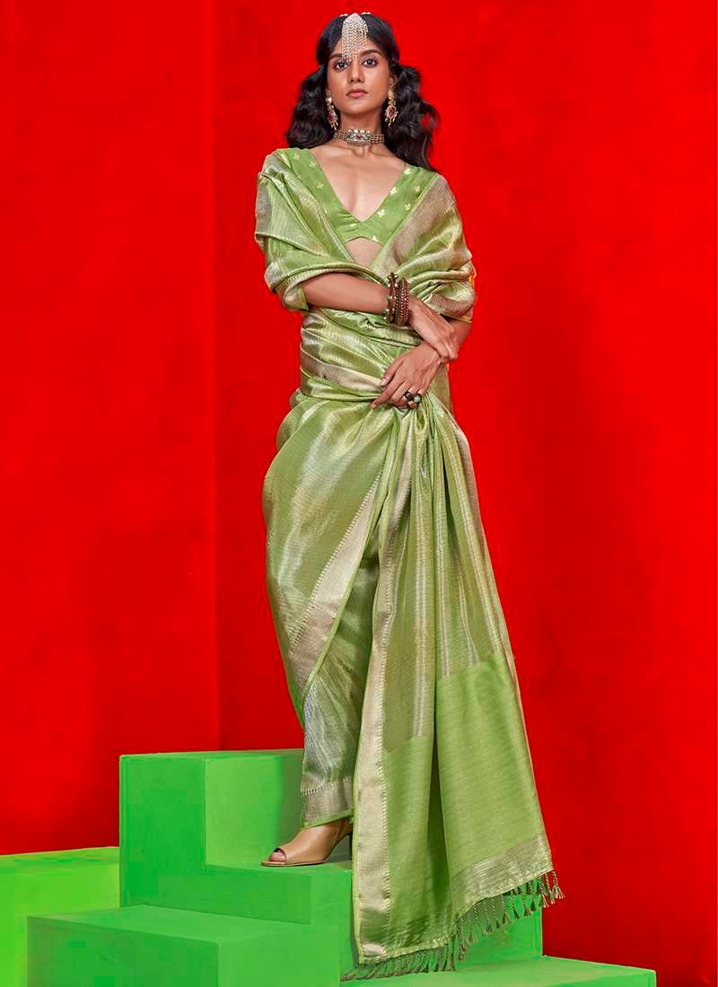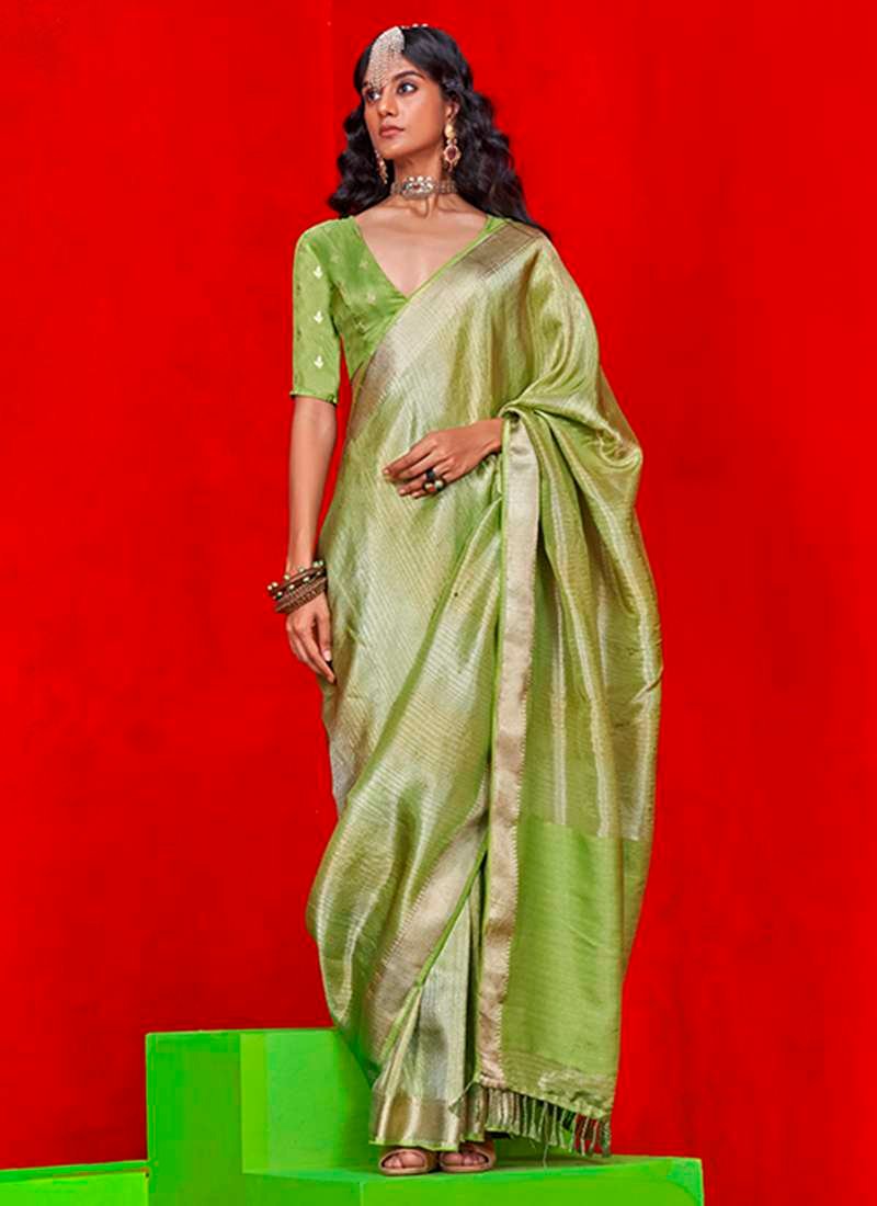 Immerse yourself in the ethereal beauty of our Pure Viscose Green Festival Wear Zari Weaving Saree, meticulously crafted from the finest pure viscose fabric. This exquisite garment boasts intricate zari weaving that adorns its elegant drape, adding a touch of shimmering opulence to your festive attire. The vibrant green hue exudes sophistication and grace, making it an ideal choice for any celebratory occasion. With its soft, flowing texture, this saree will provide you with both comfort and a captivating presence. Please note that accessories shown in the image serve as visual aids and the length may vary slightly within 2 inches. Due to the nature of digital photography, there may be a slight color variation between the actual product and the image displayed on your screen.