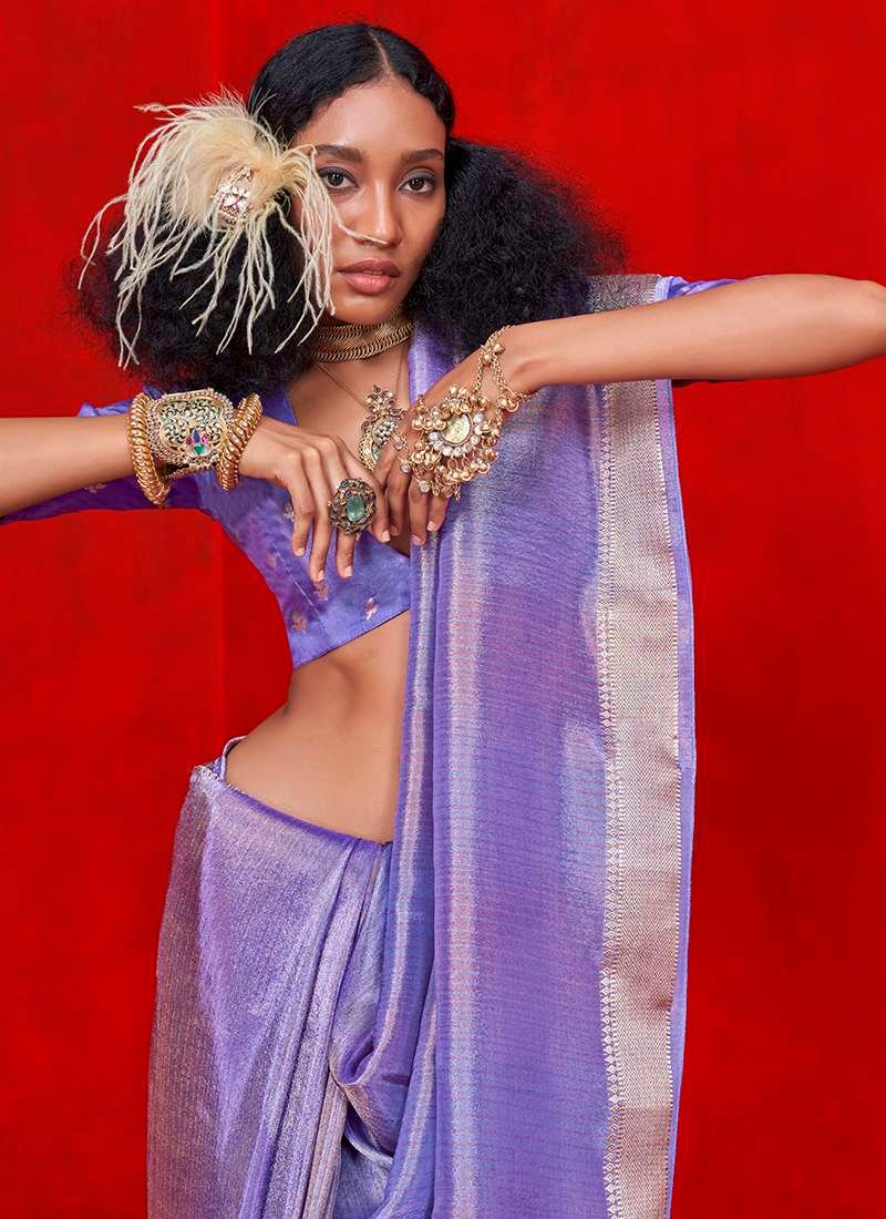 Elevate your festival wardrobe with our exquisite Pure Viscose Purple Festival Wear Zari Weaving Saree. Crafted from the finest pure viscose, this enchanting drape boasts an intricate zari weaving design that shimmers and dances with every movement. Ideal for festive occasions, this saree exudes a regal aura with its vibrant purple hue that radiates elegance and sophistication. The pure viscose fabric ensures a breathable and comfortable experience, keeping you effortlessly stylish throughout any celebration. Embrace the festive spirit in this timeless treasure that combines traditional artistry with modern allure.