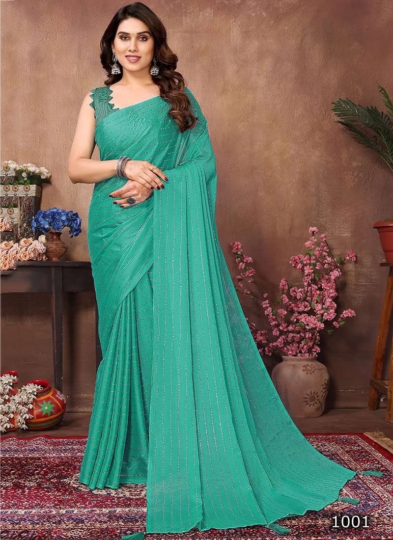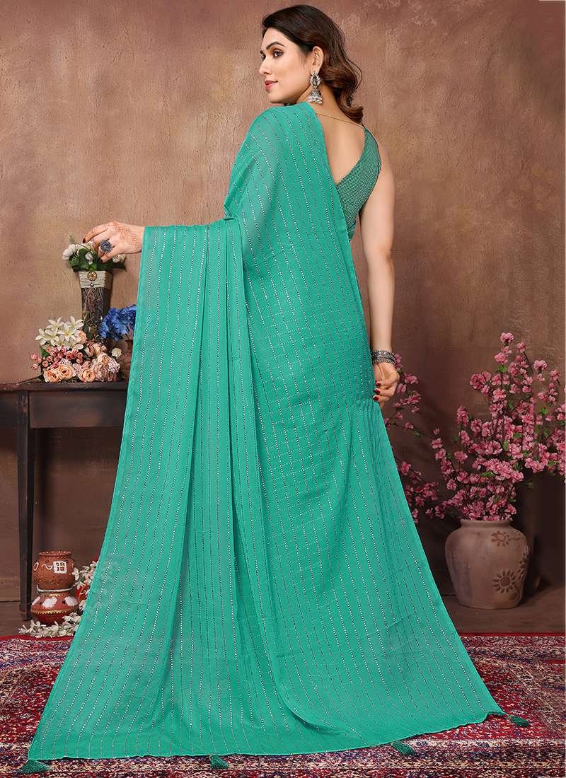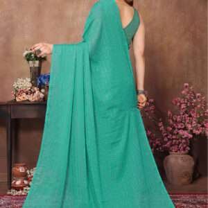 Immerse yourself in the radiant glow of our exquisite Rangoli Satin Silk Firozi Party Wear Mukesh Work Saree. Crafted from opulent Rangoli satin silk, this ethereal drape flows with a luxurious touch. Intricate mukesh work adorns the saree, adding a touch of shimmering elegance. Its stunning firozi hue captivates, evoking a sense of royalty and grandeur. Perfect for glamorous parties and special occasions, this saree is sure to turn heads and leave an unforgettable impression. Experience the epitome of sophisticated style and grace with this mesmerizing creation.