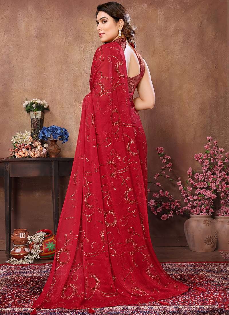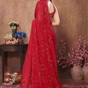 Immerse yourself in the captivating beauty of this exquisite Rangoli Satin Silk Red Party Wear Mukesh Work Saree. Crafted from shimmering Rangoli satin silk, this alluring ensemble drapes effortlessly, exuding grace and elegance. The intricate Mukesh work adorning the saree adds a touch of opulence, making it perfect for grand occasions. Its vibrant red hue emanates confidence and charm, ensuring you turn heads at every gathering. This masterpiece is not only visually stunning but also ensures your comfort, making you feel as beautiful as you look. Enhance your special moments with this exceptional Rangoli Satin Silk Red Party Wear Mukesh Work Saree, a timeless treasure that will forever captivate.