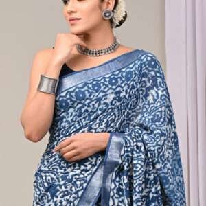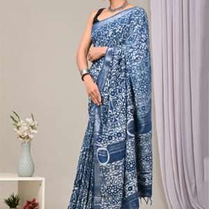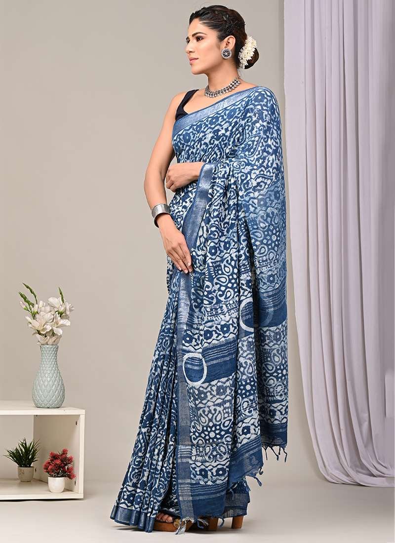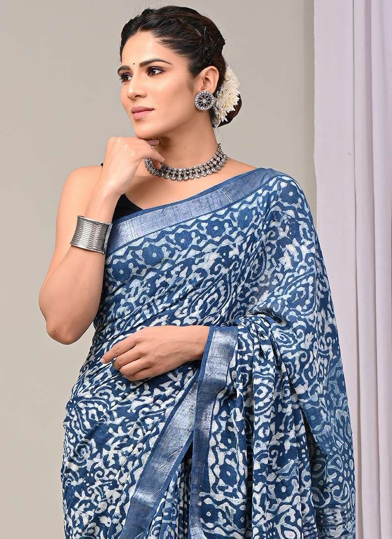 Immerse yourself in the allure of this enchanting Royal Blue Linen Cotton Casual Wear Bagru Printed Saree. Crafted from the finest linen and cotton, this exquisite drape exudes timeless elegance. Its striking royal blue hue captivates, while the intricate Bagru prints add a touch of ethnic charm. This saree is designed for effortless style and comfort, making it the perfect choice for casual gatherings and everyday wear. Indulge in its luxurious texture, delicate craftsmanship, and vibrant colors that will elevate your wardrobe to new heights. Please note that the first wash requires dry cleaning, and slight variations in color and length may occur.