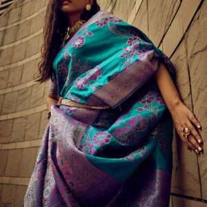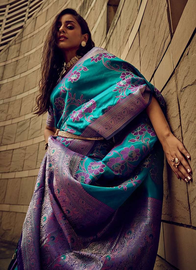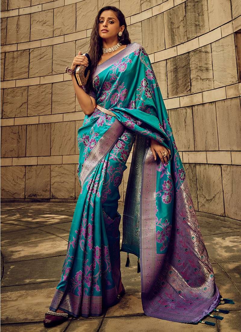 Malhari Satin Firozi Brasso Saree