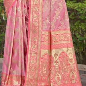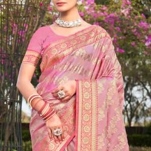 Unveil the captivating allure of our Satin Silk Light Pink Festival Wear Weaving Saree, a mesmerizing masterpiece crafted from the finest satin silk. Its light pink hue exudes a soft and feminine charm, while the intricate weaving adds depth and texture. The graceful drape falls effortlessly over your silhouette, creating an ethereal effect that will turn heads at any festive occasion. Each saree is meticulously hand-woven by skilled artisans, ensuring unparalleled quality and attention to detail. Experience the luxurious touch and radiant glow of our satin silk sarees, designed to make you feel confident and radiant.