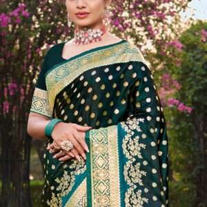 Indulge in the epitome of elegance with our Satin Silk Rama Party Wear Weaving Saree. Crafted from luxurious satin silk, this saree drapes effortlessly, exuding a subtle sheen that will captivate all eyes. The intricate weaving adorns the fabric, creating a mesmerizing interplay of light and shadow. The rama hue adds a touch of earthy sophistication, making this saree perfect for any party or formal occasion. Its timeless design and superior quality ensure that it will become a cherished piece in your wardrobe.