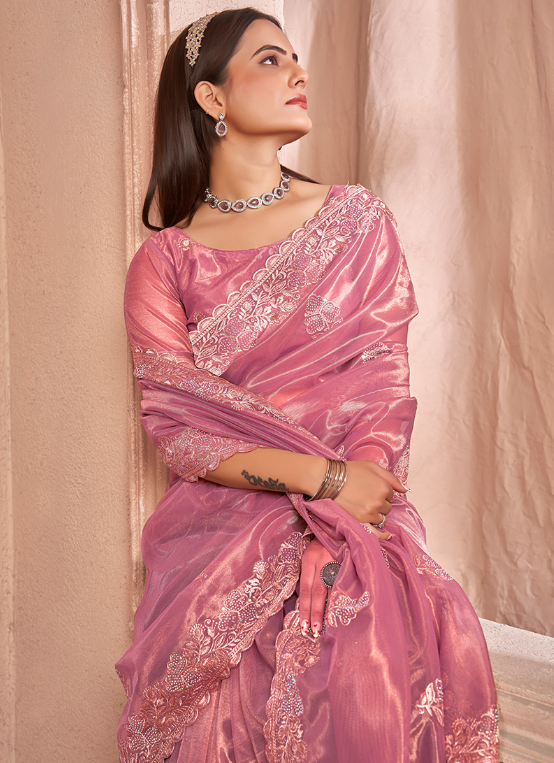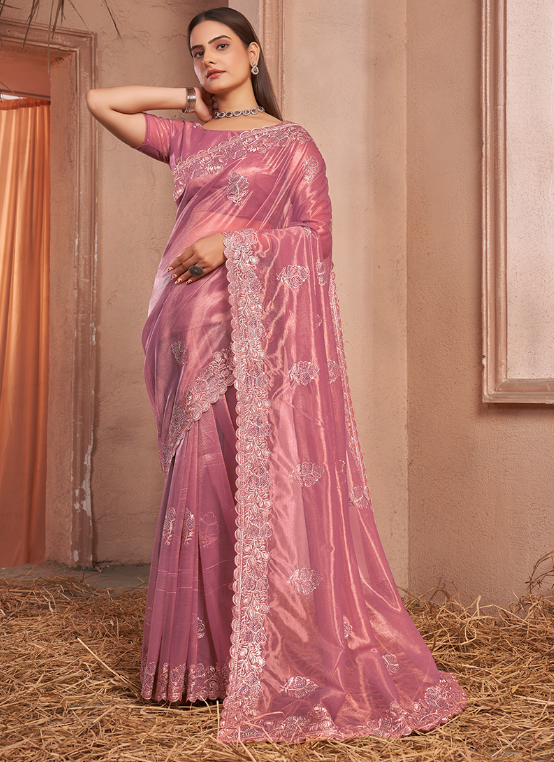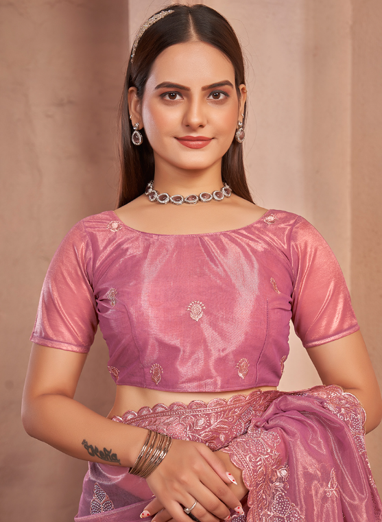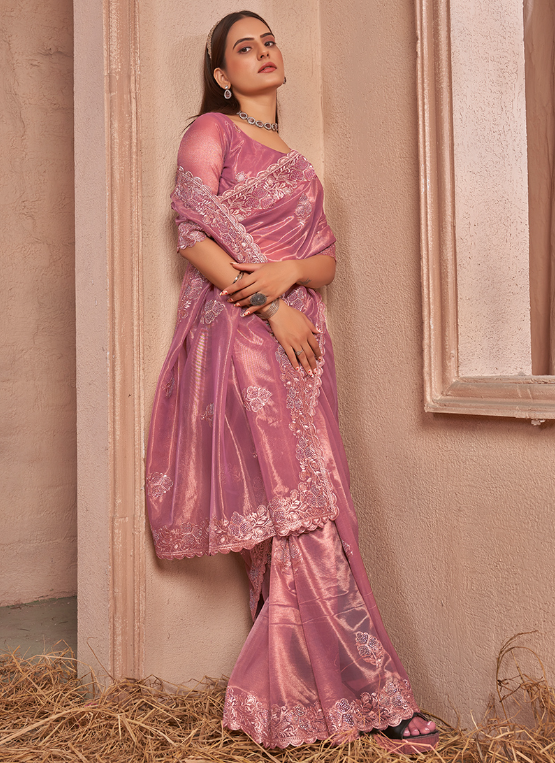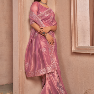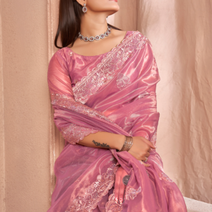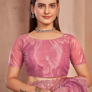 Introducing our exquisite Shimmer Silver Net Pink Party Wear Swarovski Work Saree, a captivating masterpiece that will turn heads at any special occasion. This alluring saree is crafted from shimmering silver net, adorned with intricate Swarovski work that dances elegantly upon its surface. The vibrant shade of pink exudes feminine charm, while the intricate embroidery adds a touch of grandeur. Its luxurious fabric drapes effortlessly, showcasing your silhouette with grace and sophistication. Perfect for parties, weddings, and other festive events, this saree is a testament to traditional craftsmanship combined with modern elegance. Elevate your wardrobe with this stunning piece and let your radiance shine through.
