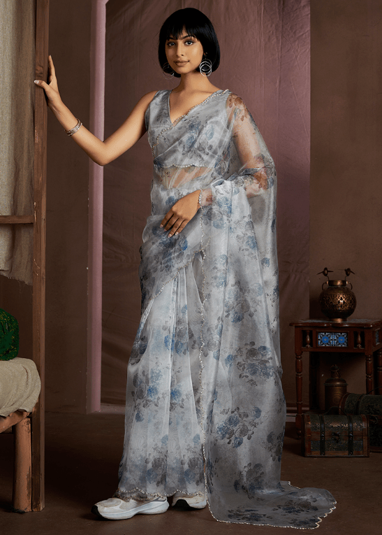Immerse yourself in the ethereal elegance of our Soft Organza Grey Traditional Wear Zircon Border Saree. Crafted from sheer and flowing soft organza, this saree drapes gracefully, creating a breathtaking silhouette. Its exquisite zircon border shimmers with intricate detailing, adding a touch of regal charm to your traditional ensemble. Perfect for special occasions, this saree evokes a sense of timeless beauty and allure.