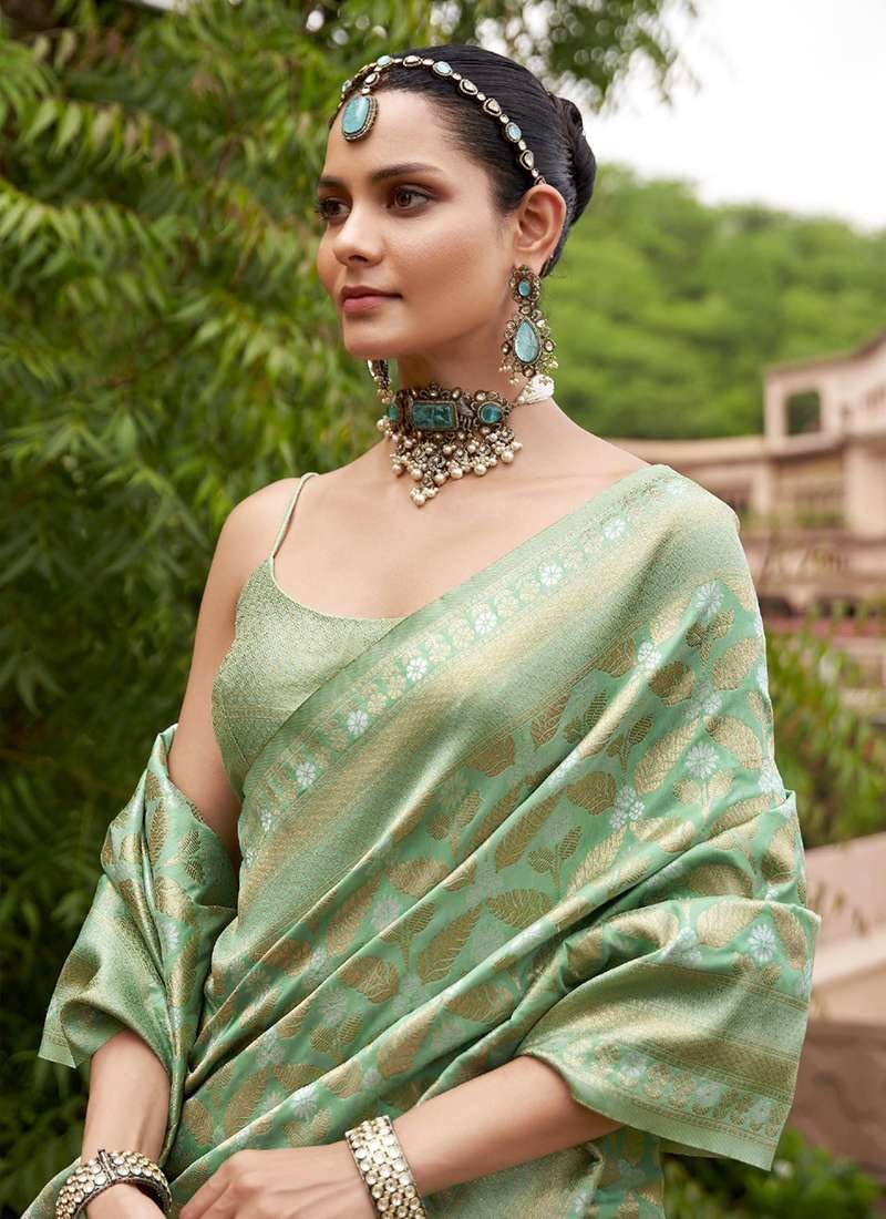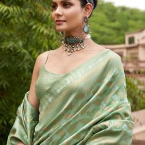 Malhari Viscose Banarasi Silk Pista Green Jaal Design Work Saree