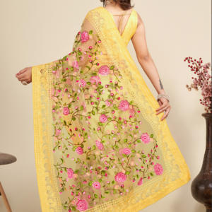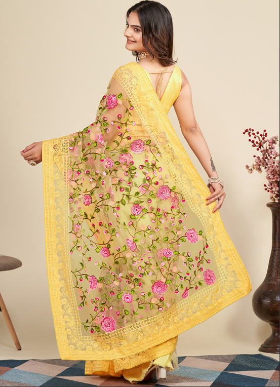Immerse yourself in the enchanting elegance of our Yellow Soft Net Traditional Wear Embroidery Work Saree, a sartorial masterpiece adorned with intricate embroidery that captivates the senses. Crafted from the softest net fabric, this saree drapes effortlessly over your form, caressing your skin with a whisper-soft touch. Its vibrant yellow hue exudes a radiant allure, making it a perfect choice for any traditional occasion. The intricate embroidery work, meticulously hand-crafted, adds an air of sophistication that will turn heads wherever you go. Step into this exquisite attire and embrace the essence of traditional Indian artistry, creating memories that will last a lifetime.
