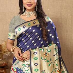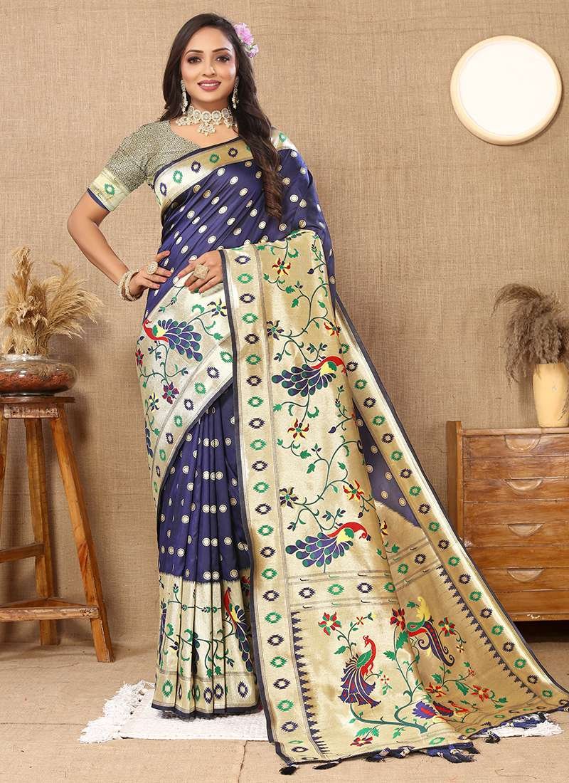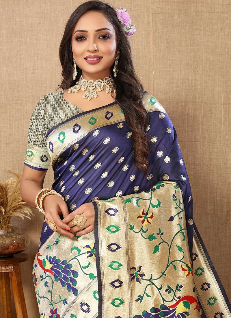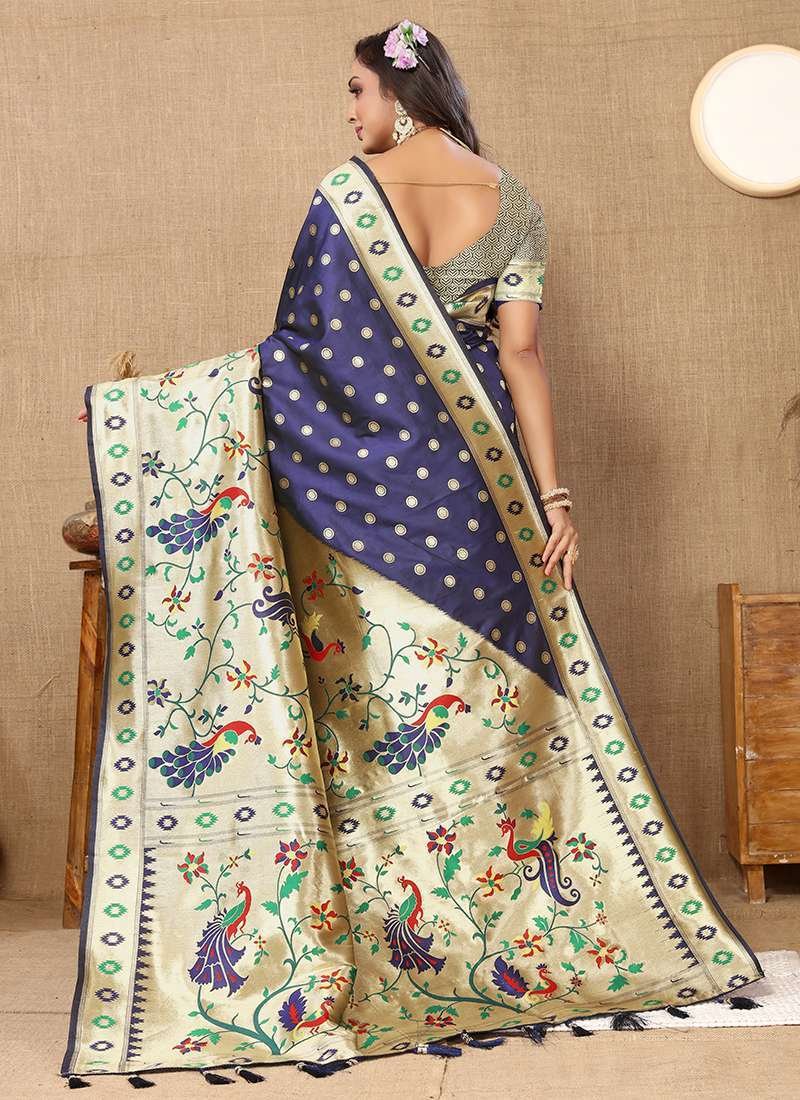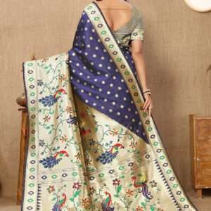 Malhari Silk Navy Blue Paithani Saree